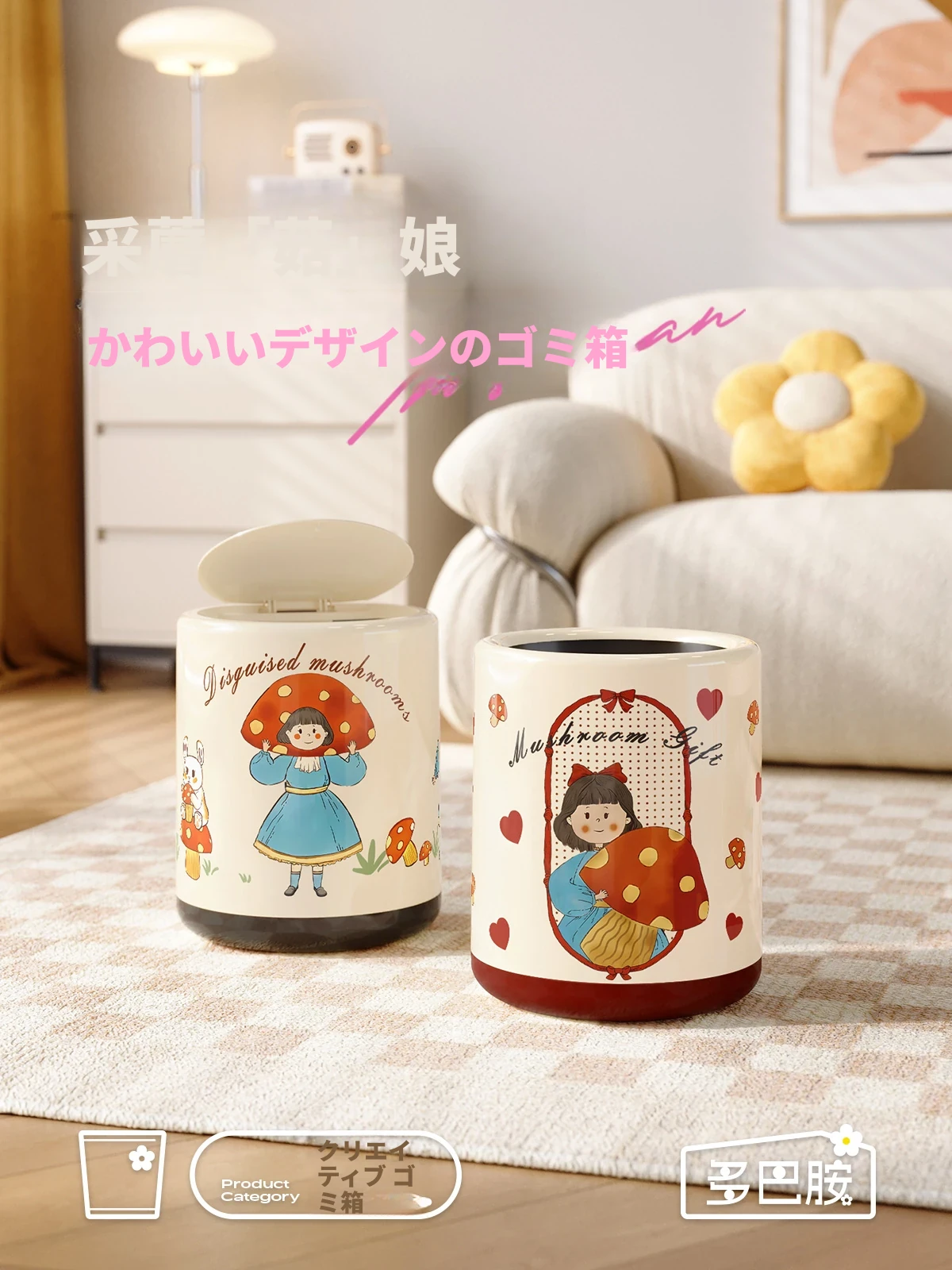 美世達の可愛いカートゥーンデザインのゴミ箱 - 大容量プッシュ式蓋付き、リビングや寝室にぴったり!おしゃれで実用的、あなたの部屋を可愛く彩ります。
