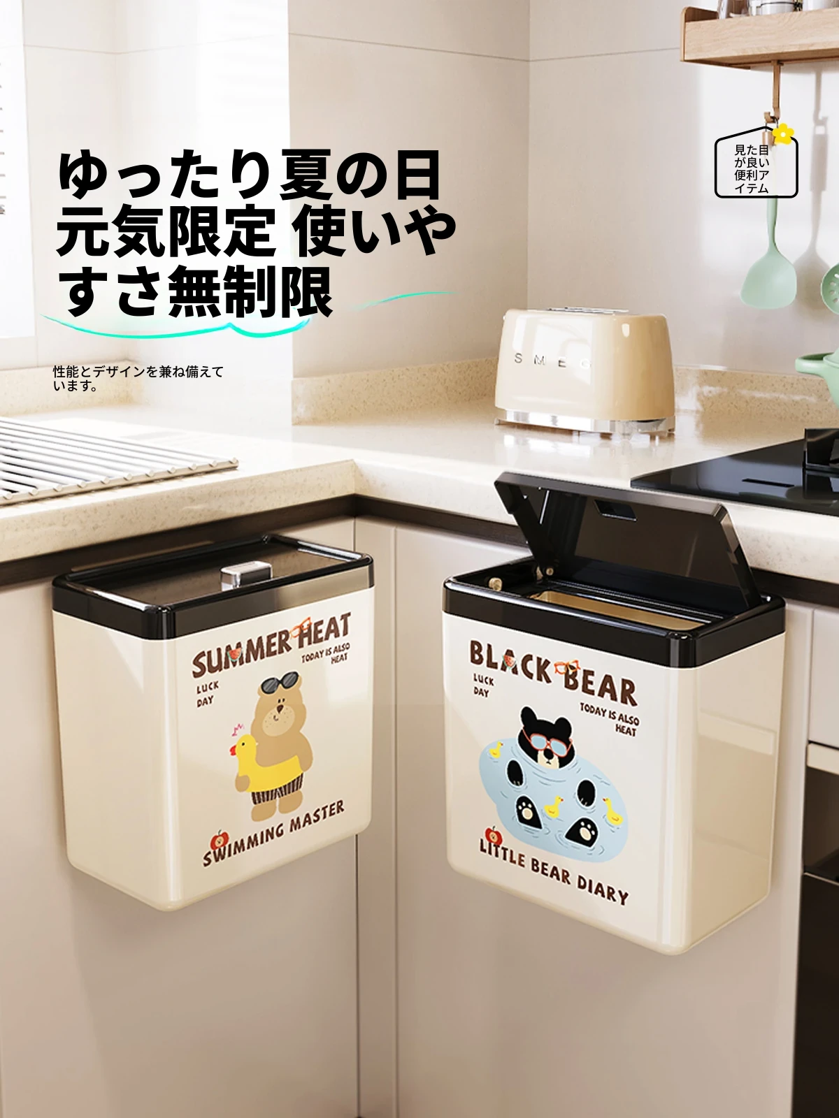 美世达 壁掛け式ゴミ箱 2025年新作!かわいいキャラクター付きのキッチン専用蓋付き収納バケツで、家の中をスッキリ整理。おしゃれで機能的なデザインが魅力!