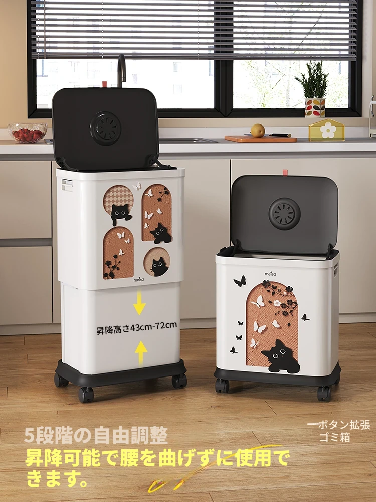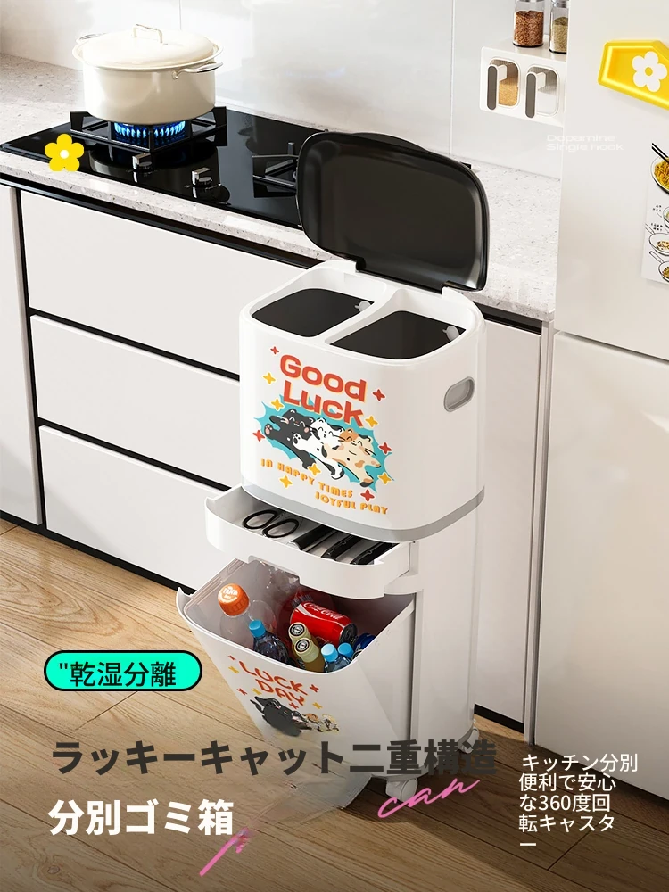 美世达ダブルレイヤー高容量ダストボックス - ウエストを曲げずに使える!家庭用・乾湿分離・キッチン専用で、美しいデザインが魅力。おしゃれな空間を演出し、使いやすさも抜群!