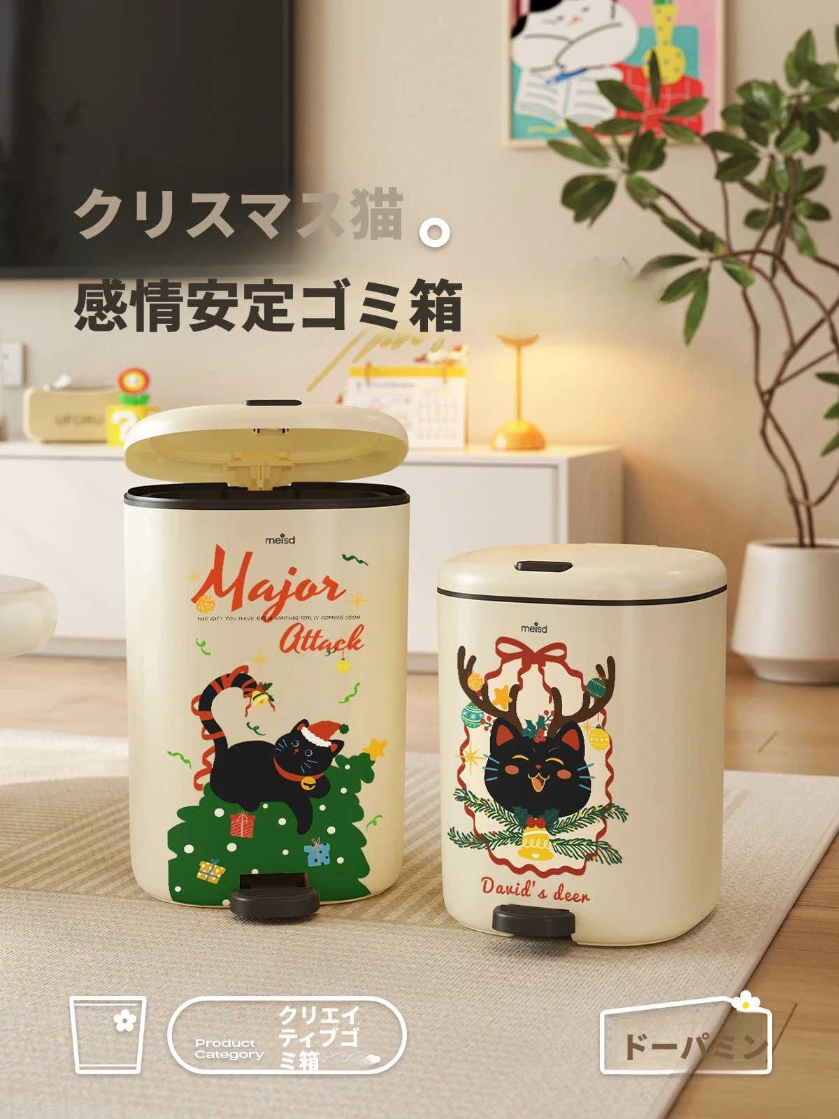 美世达のフタ付きゴミ箱 - 家庭用ペダル式・大容量・おしゃれなデザイン!クリスマスにぴったりの可愛さで、インテリアにも映える!