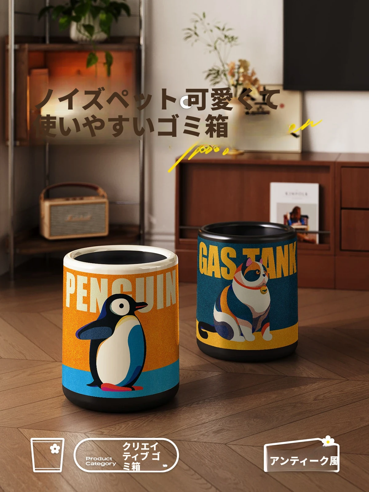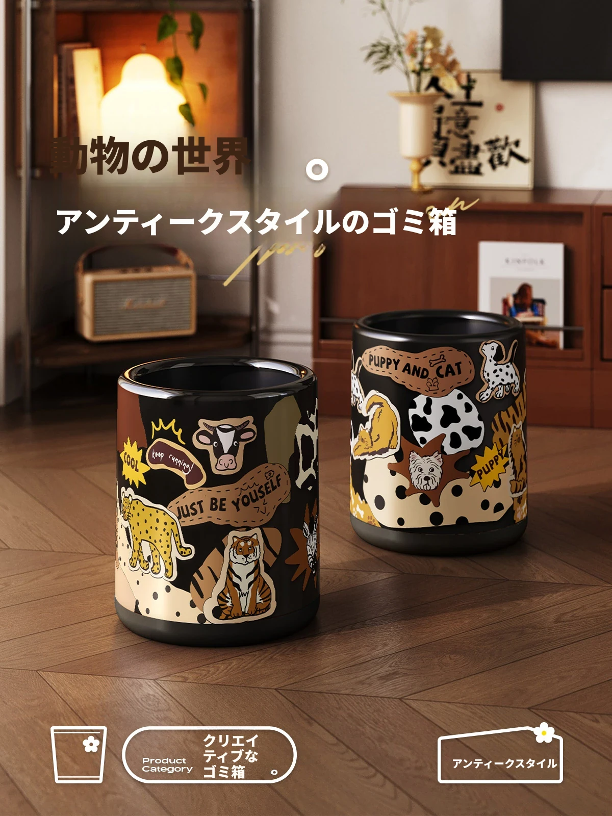 美世达自動吸着ゴミ箱 - 高品質でスタイリッシュなヴィンテージ風カートゥーンデザイン、リビングや寝室にぴったりの大容量ペーパーゴミ箱!おしゃれで機能的な生活空間を演出します。