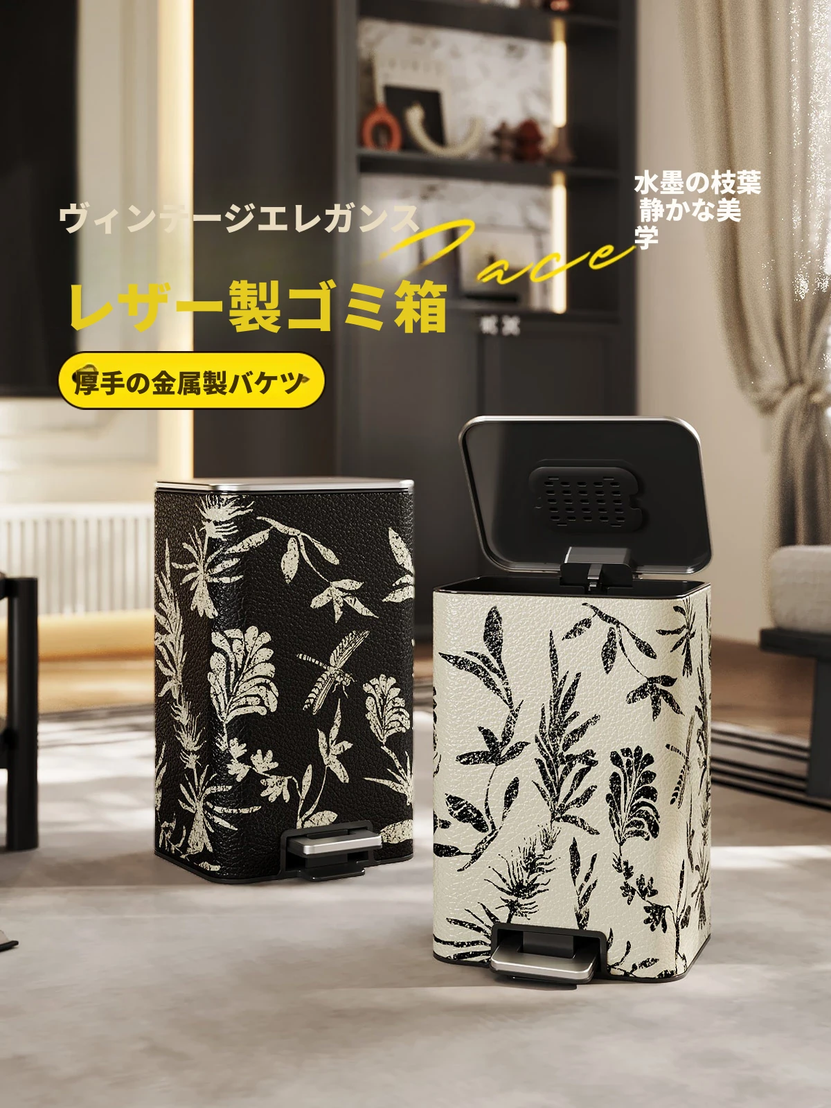 美世达 ステンレス レザー ゴミ箱 家庭用 高級感あふれるアメリカンレトロデザイン 2025年新作 リビング用 フットペダル付き 蓋付き