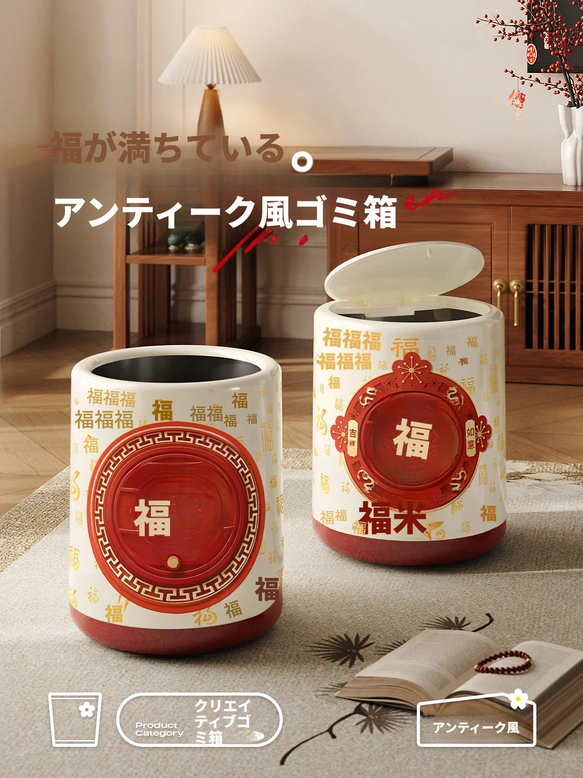 美世达の大容量ゴミ箱 - 家庭用、お祝いにぴったり!中華風デザインで、リビング・寝室・トイレに最適。福を呼び込むアイテムで、生活空間を華やかに演出します!