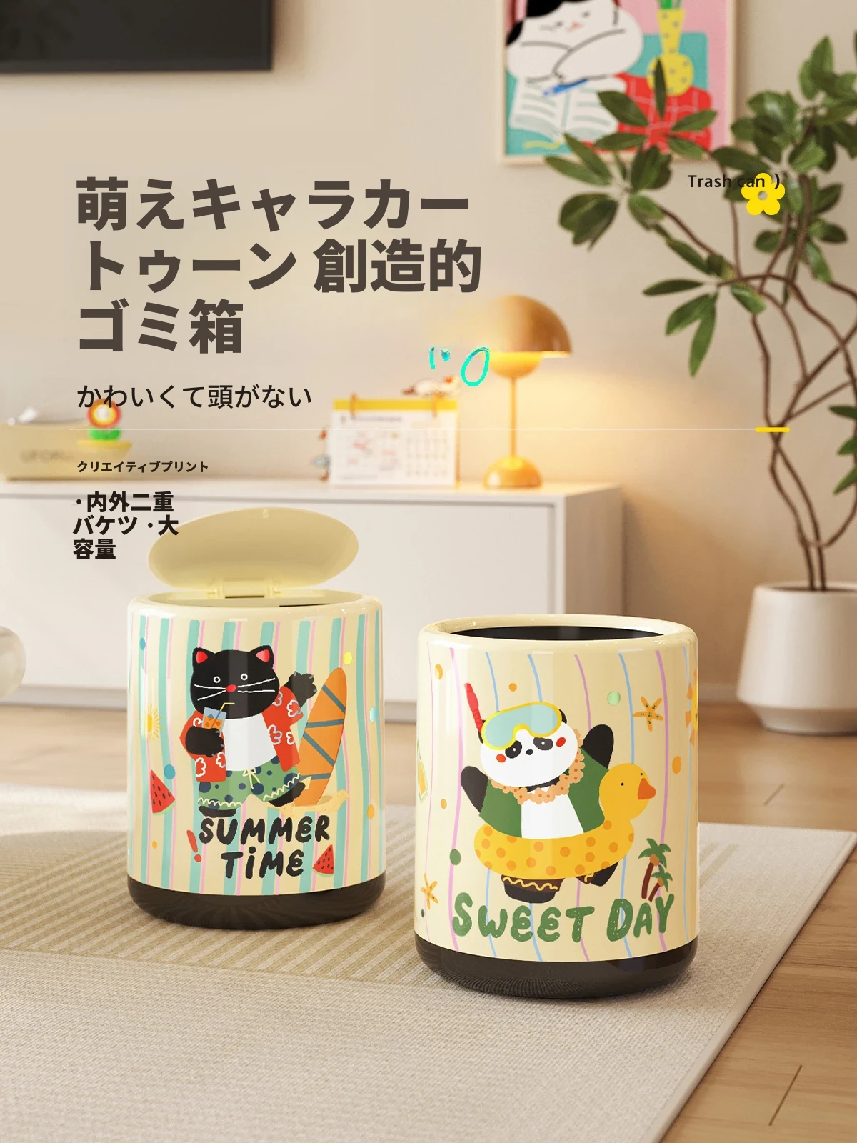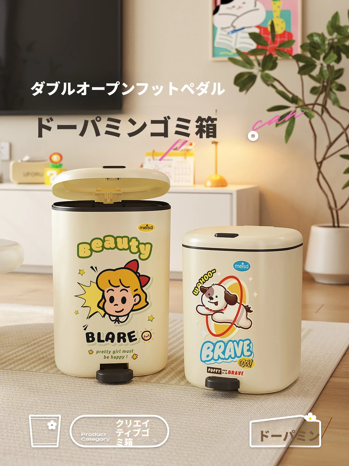 メイシーダ創造的なゴミ箱|家庭用クリームカラーの可愛いカートゥーンデザイン|リビングや寝室にぴったり|二重構造で大容量のフタ付き|おしゃれで実用的なアイテム!