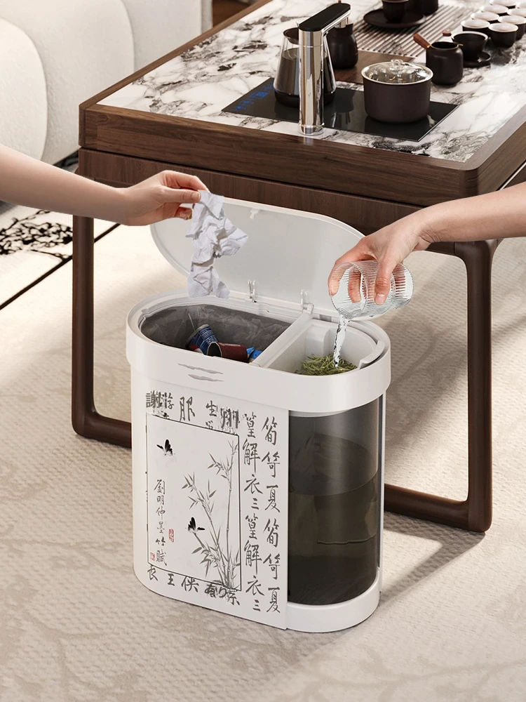 美世达の家庭用ゴミ箱 - 蓋付き・乾湿分別・オフィスにも最適な大容量茶水桶 - 中華風デザインでスタイリッシュな収納を実現!