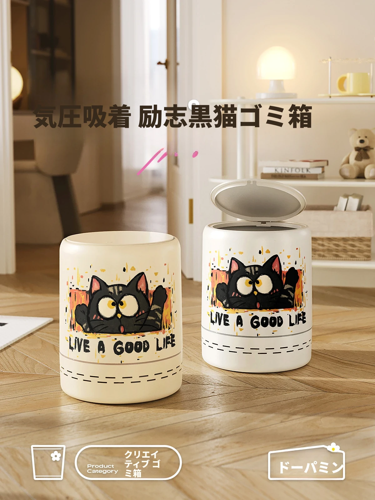 美世达の自動吸着カートゥーンブラックキャットゴミ箱 - 大容量・フタ付きでリビングや寝室に最適!可愛いデザインでお部屋を明るくし、使うたびに心が弾むダイナミックな生活をサポートします!
