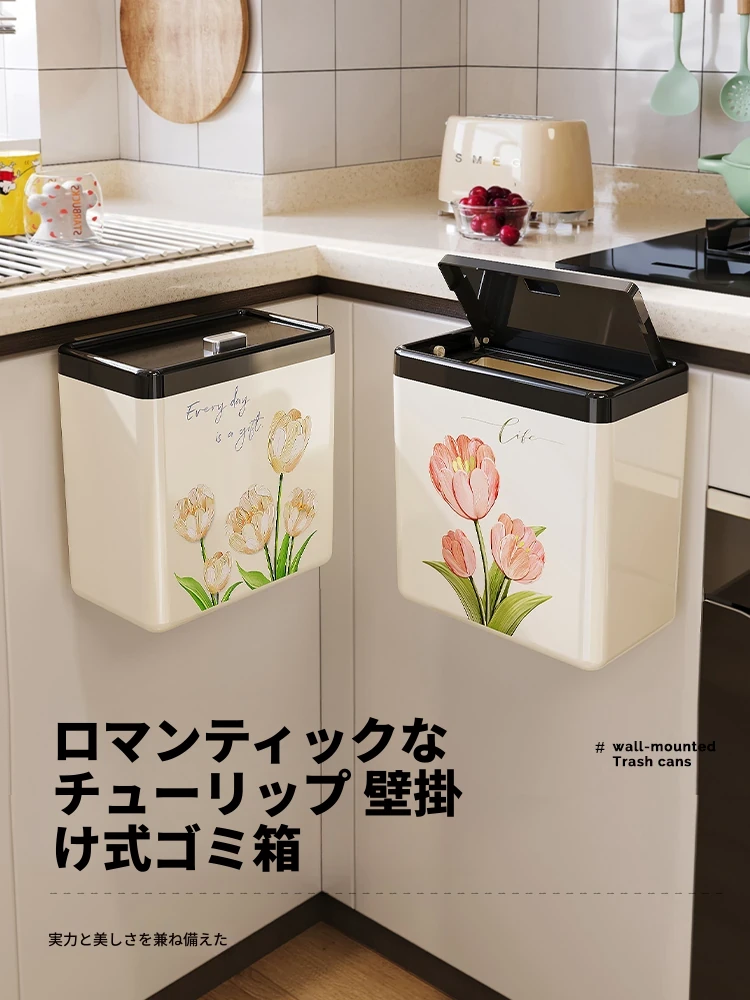 美世达キッチンゴミ箱 壁掛け式 家庭用チューリップデザイン 大容量 トイレ・バスルーム用 蓋付き 高級感溢れるスタイル