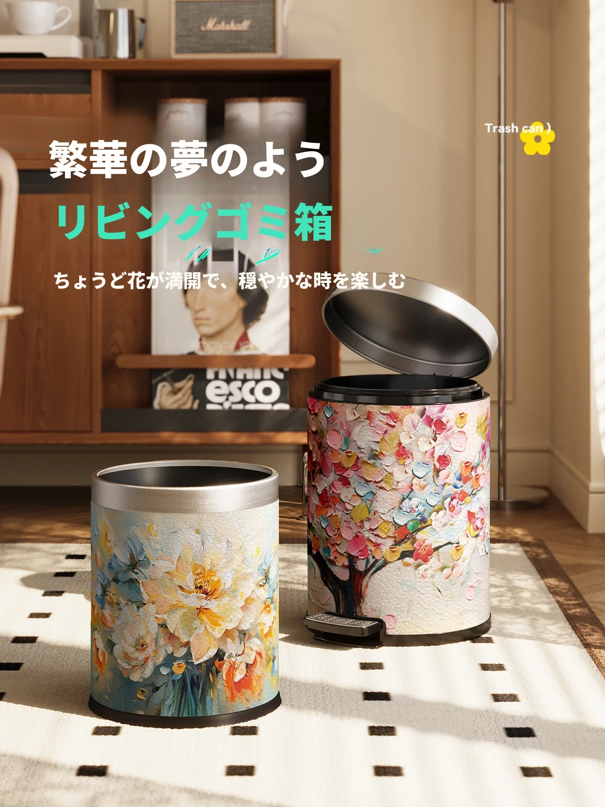 美世达のクリエイティブな中古風ゴミ箱 - スタイリッシュなデザインで、リビングや寝室にぴったり!高級感あふれるカバー付きフットペダル式、あなたの生活空間を一段と華やかに演出します。
