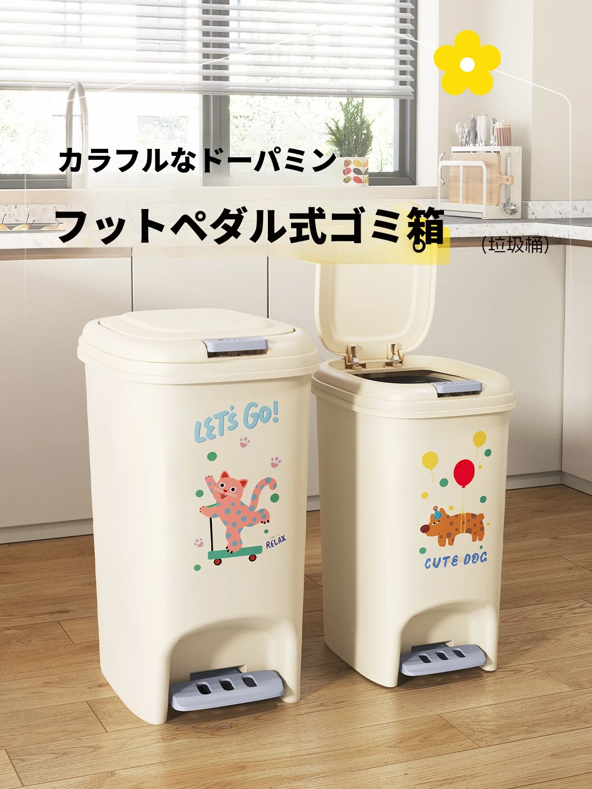 ミスターダ キッチンゴミ箱 蓋付き 家庭用 リビング トイレ カートゥーン 可愛い 大容量 脚踏み式 新型 便利でスタイリッシュなデザイン!