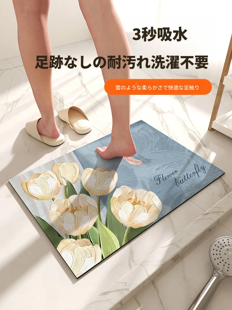美世达速乾バスルームマット - 吸水性抜群!滑り止め付きで安全安心、家庭用トイレや洗面所に最適な柔らかいマットです。快適なバスタイムをお楽しみください!
