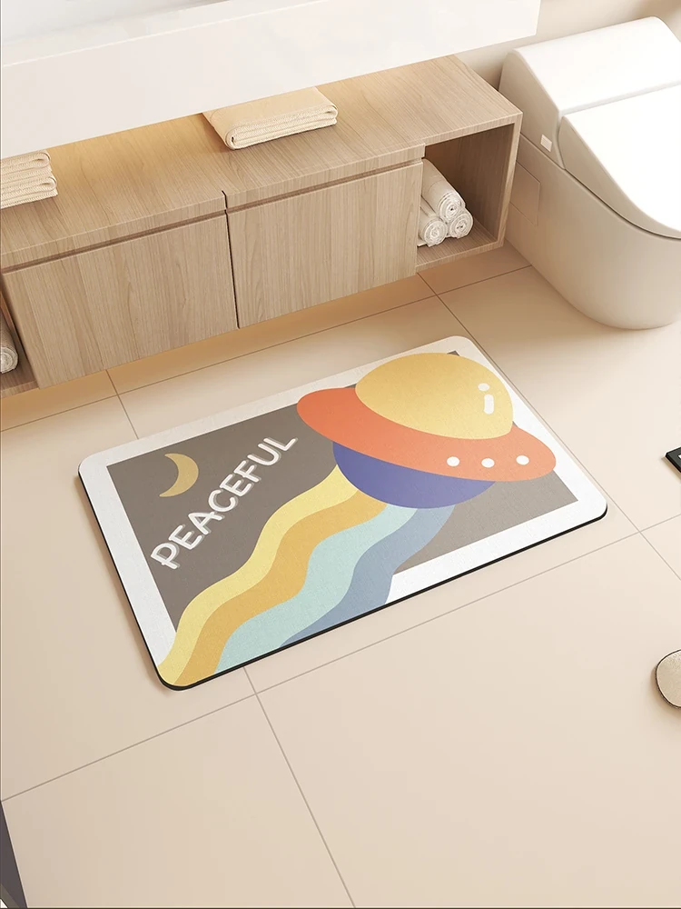 Meisida Quick-Dry Absorbent Bathroom Mat - Non-Slip, Anti-Fall Home Bath Rug with Fun Cartoon Design for Toilet Entrance