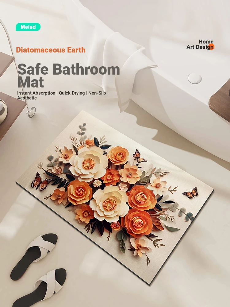 Meishida Absorbent Bathroom Mat - Soft Diatomite Mat for Home Use, Non-Slip, Quick-Dry, Ideal for Toilet and Bathroom Entrance