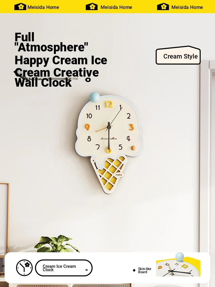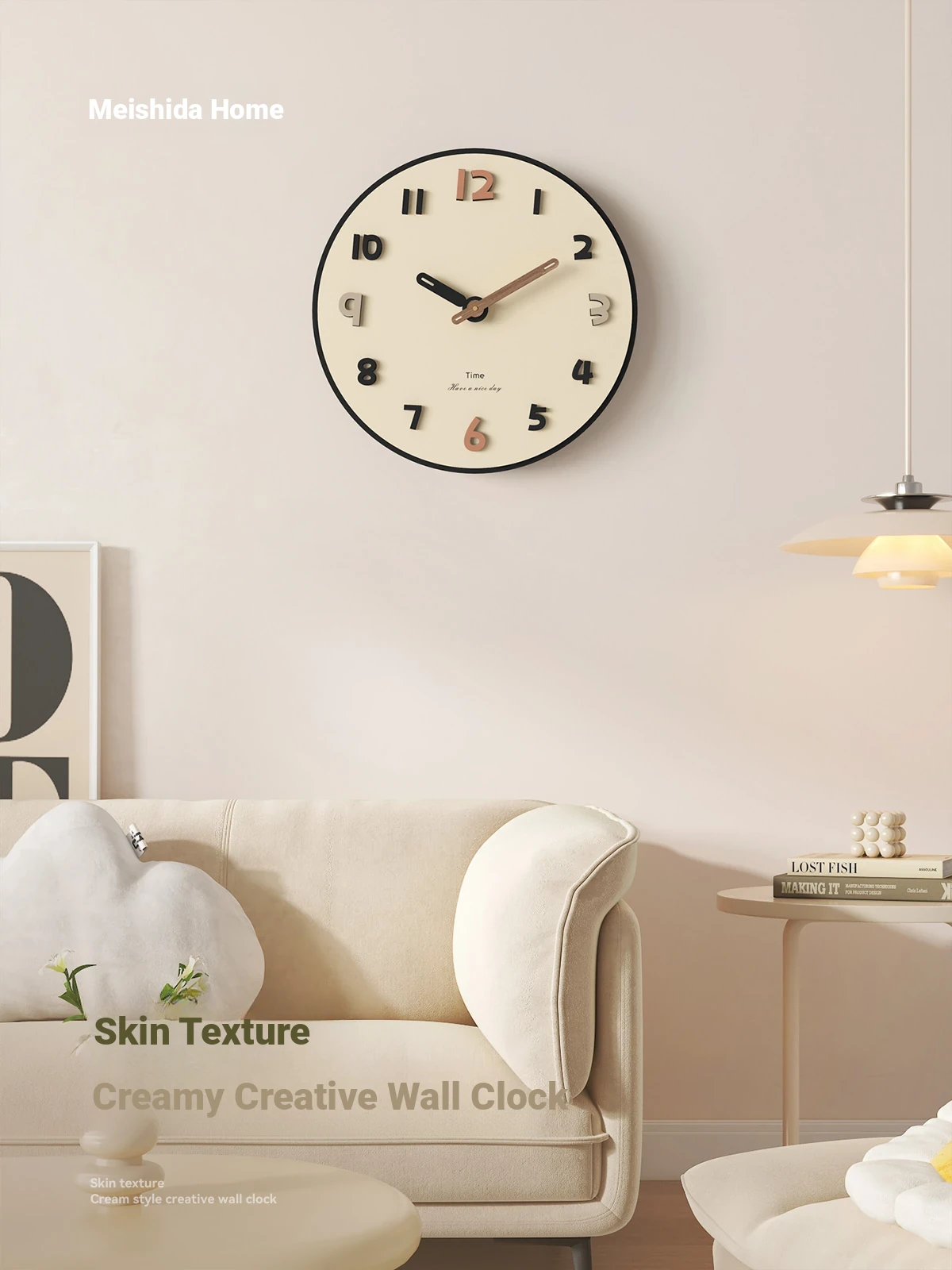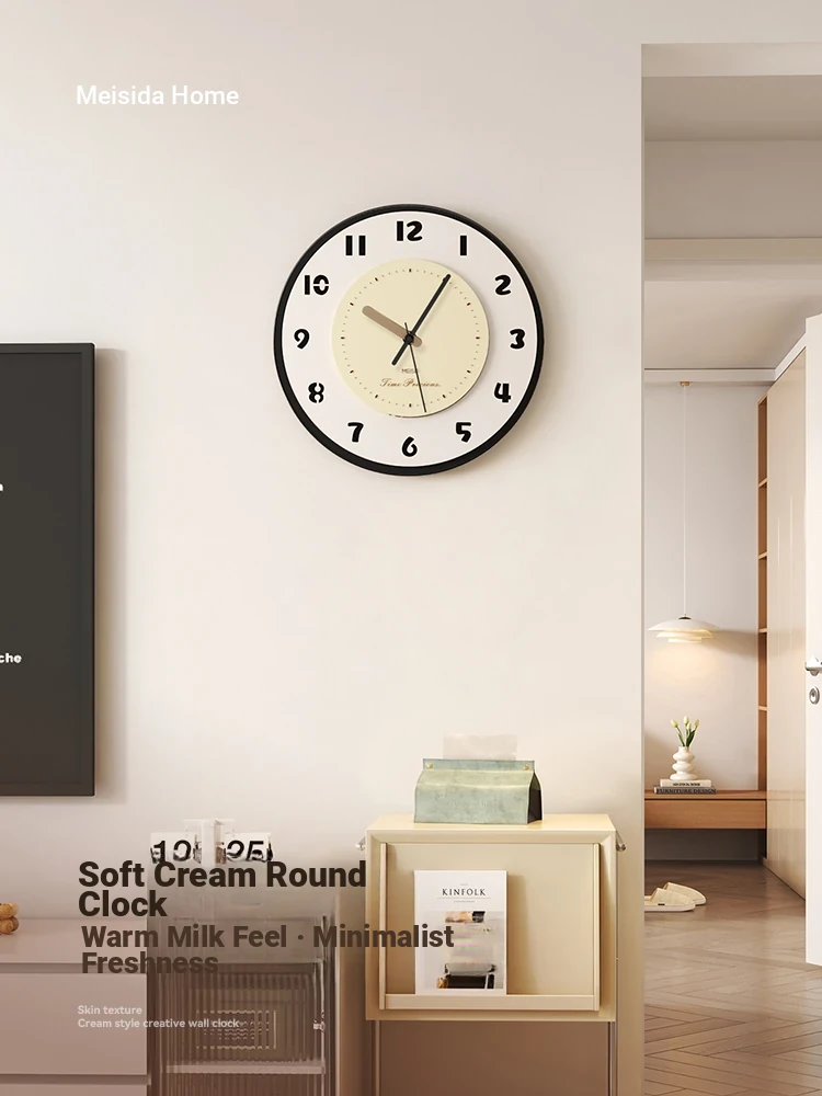 Meisida Creative Minimalist Cream Wall Clock - 2025 New Silent Clock for Living Room, Stylish and Functional Home Wall Timepiece