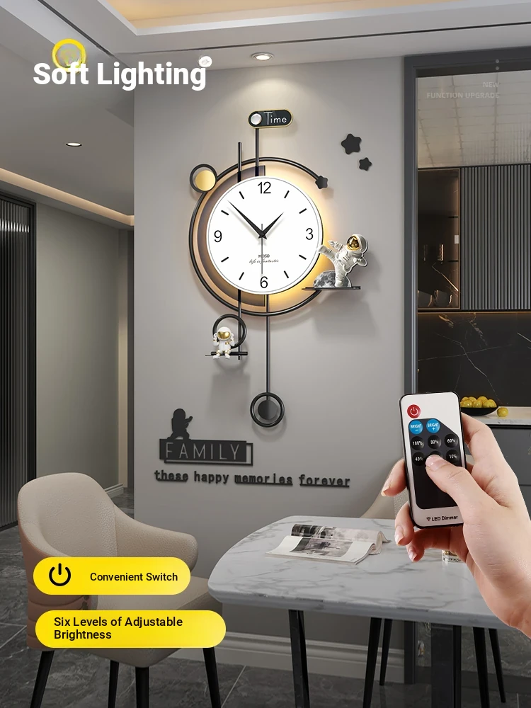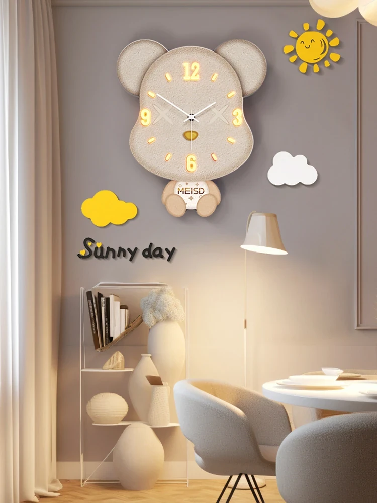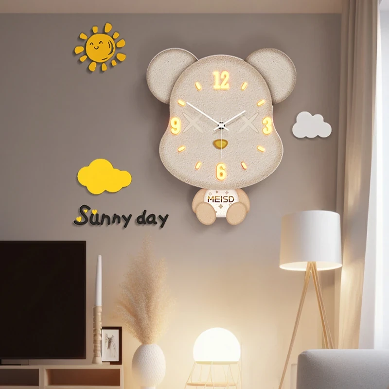 Modern Minimalist Wall Clock - 2023 New Design for Living Room and Dining Room, Creative Bear Wall Clock with Stylish Wall Light, Perfect for Home Decoration