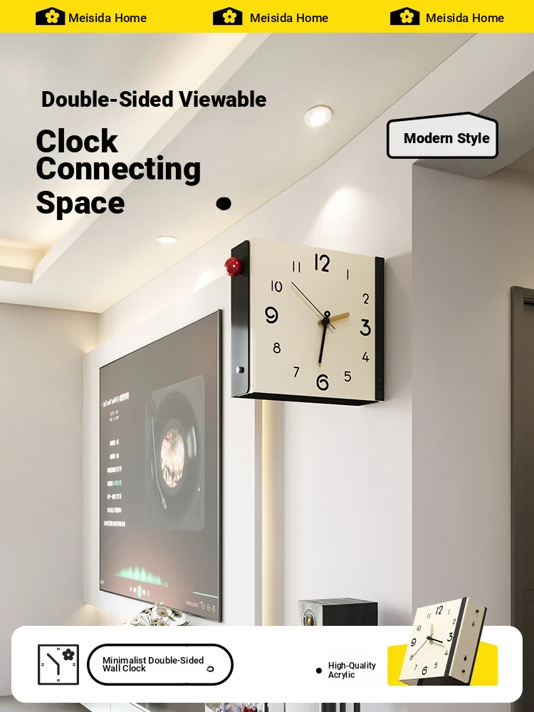 Meisida Modern Double-Sided Wall Clock 2025 - Creative Corner Design for Living Room, Minimalist Style, Unique Art Clock to Elevate Your Home Décor