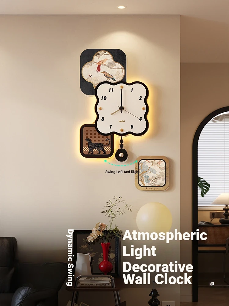 Meisida Vintage-Inspired Wall Clock for Living Room - 2025 New Creative Design with Artistic Wall Light, Elevate Your Space with Sophistication and Style