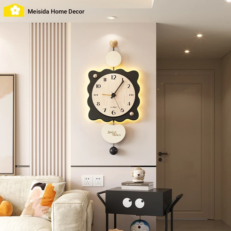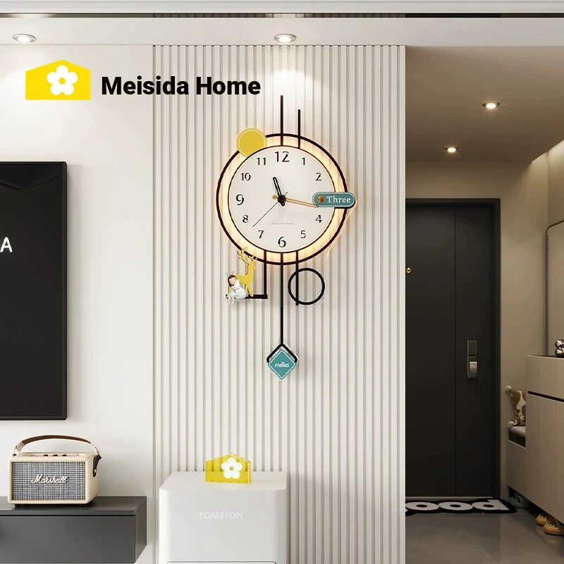 Meisida 2024 New Creative Luxury Modern Minimalist Wall Clock - Stylish and Elegant Living Room Timepiece with Integrated Wall Light