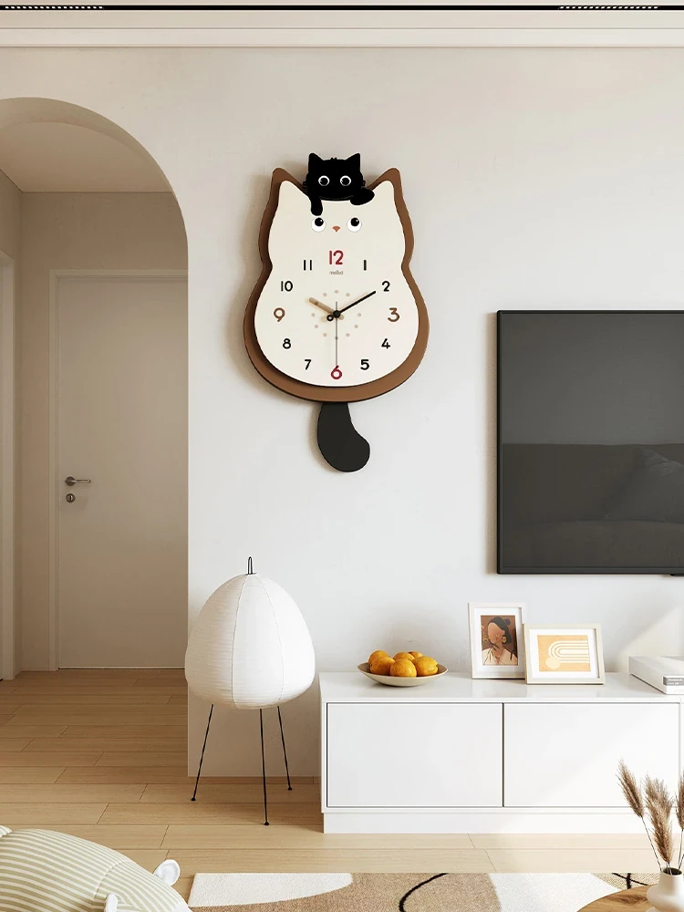 Meisida Creative Cat Wall Clock - 2025 New Minimalist Home Modern Art Clock for Living Room, Stylish and Elegant Timepiece