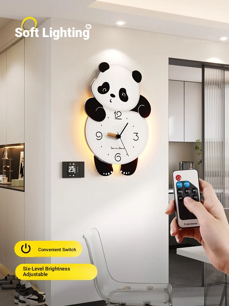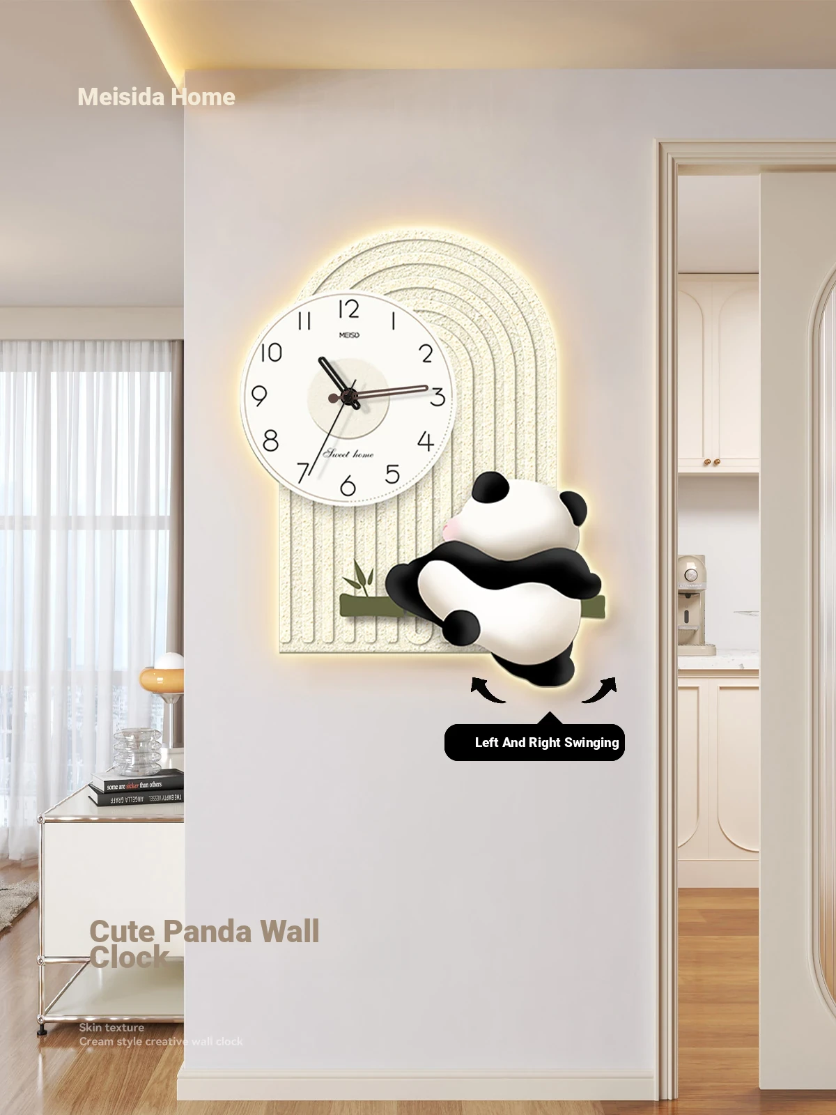 Cute Panda Wall Clock by Meishida - Creative Animal Design for Home, Living Room, and Dining Room - 2025 New Model with Unique Backlight Feature