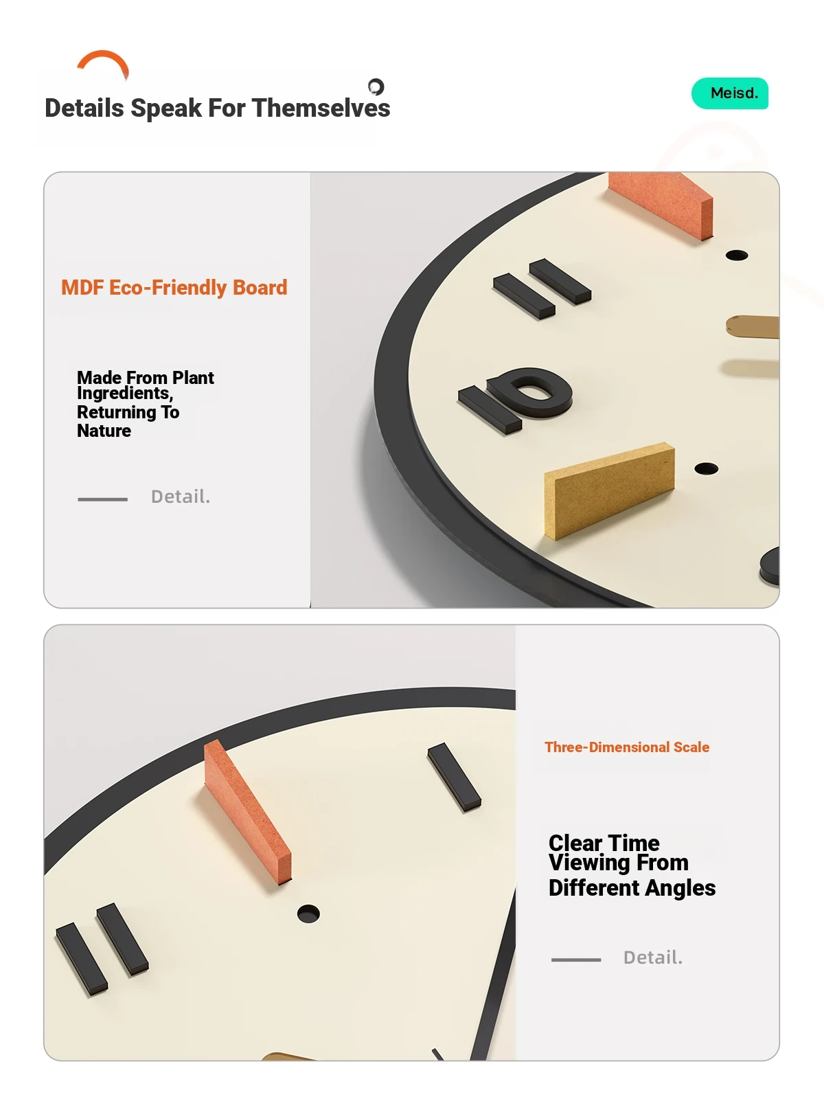 Meisida Silent Wall Clock - 2024 New Creative Design for Dining and Living Rooms, Trendy Minimalist Style, Perfect for Modern Home Décor