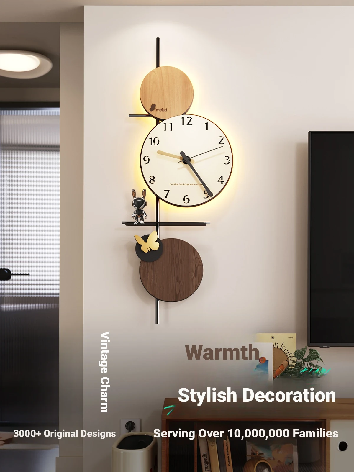 Meisida Vintage-Inspired Creative Wall Clock for Living Room - 2025 New Retro Design, Elegant Wall Timepiece with Ambient Lighting