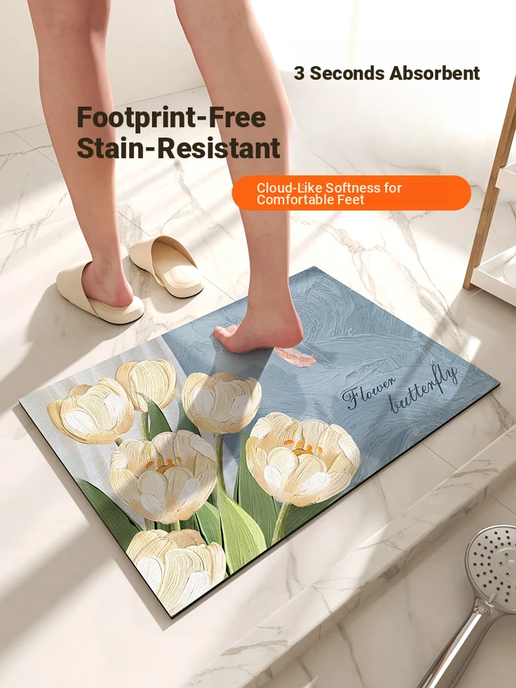 Meishida Quick-Dry Absorbent Bathroom Mat - Anti-Slip Tulip Design for Safety in Restrooms and Toilets - Perfect Foot Mat for a Clean and Stylish Bathroom Experience!