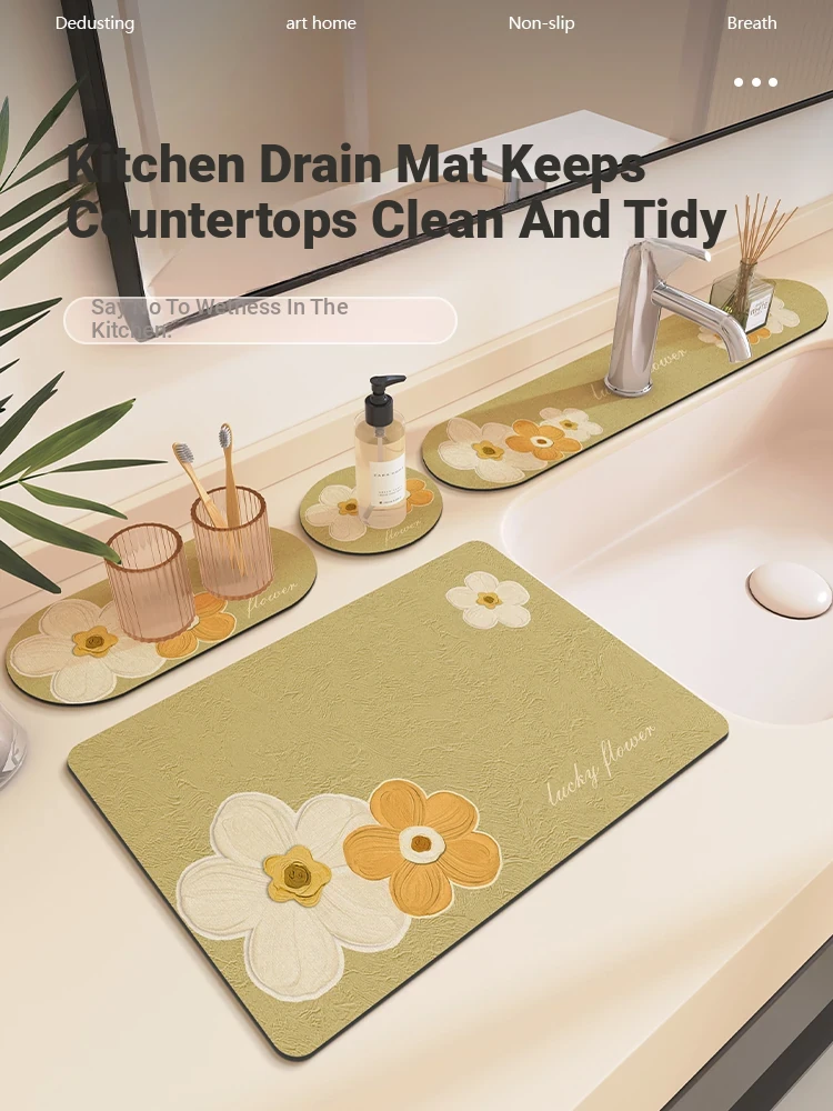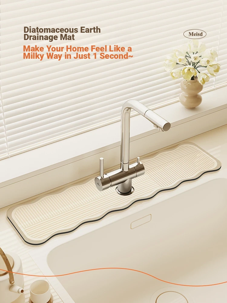 Meisida Kitchen Drain Mat - Quick-Dry, Absorbent Sink Mat for Faucets and Countertops, Easy to Clean, Splash-Proof Design for a Neat and Dry Kitchen Space