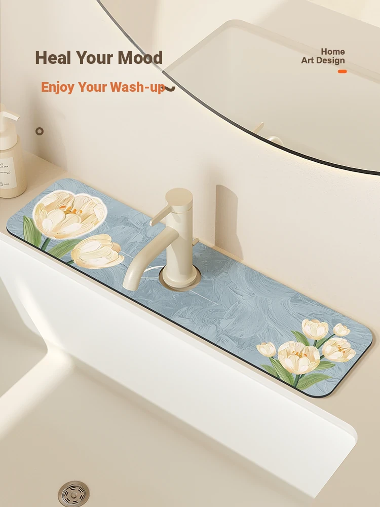 Meisida Bathroom & Kitchen Sink Faucet Mat - Absorbent Splash Guard for Washbasin, Countertop, and Vanity - Keeps Your Space Clean and Dry!