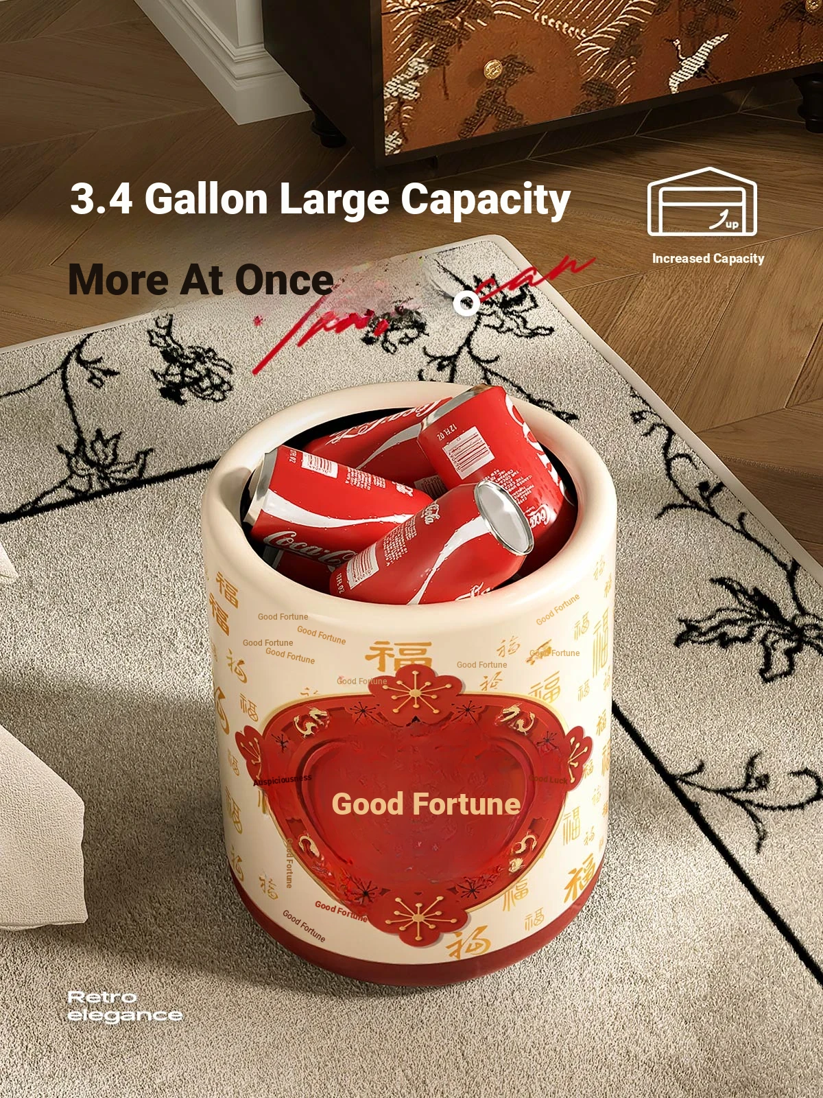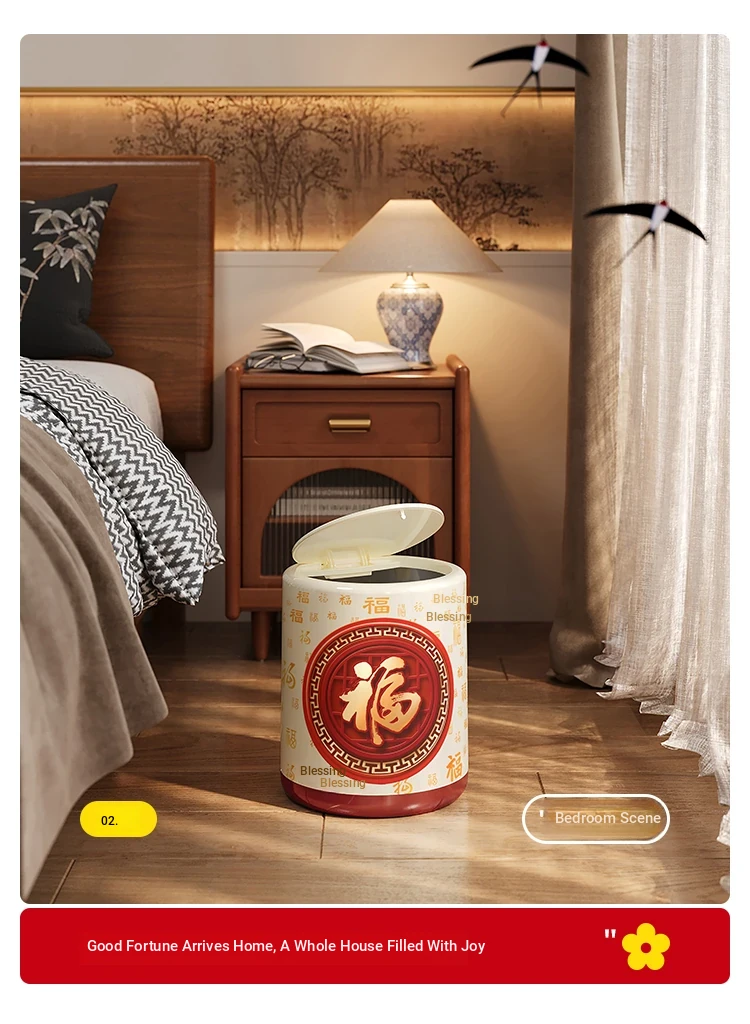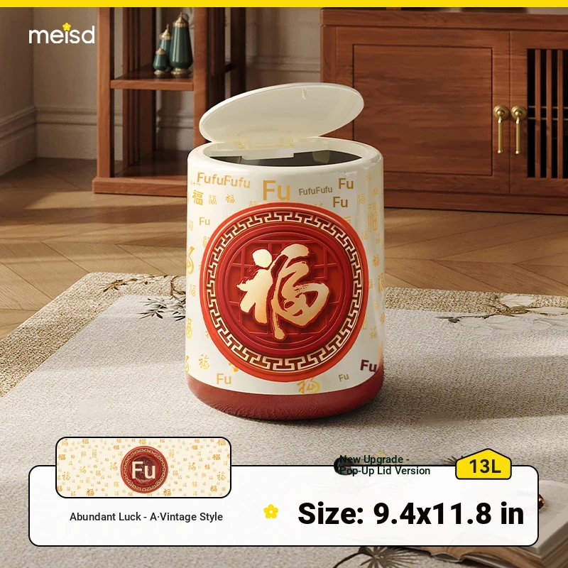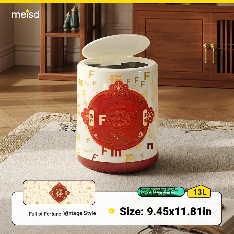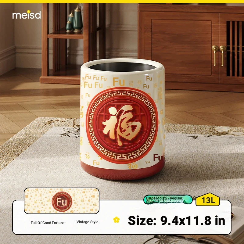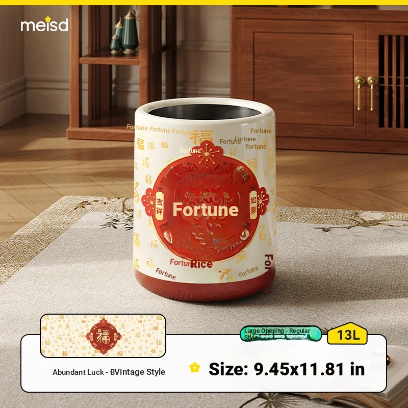Meisida Large Capacity Trash Can - Festive Vintage Design for Home, Perfect for Living Room, Bedroom, and Bathroom - Bring Abundance and Joy to Your Space!