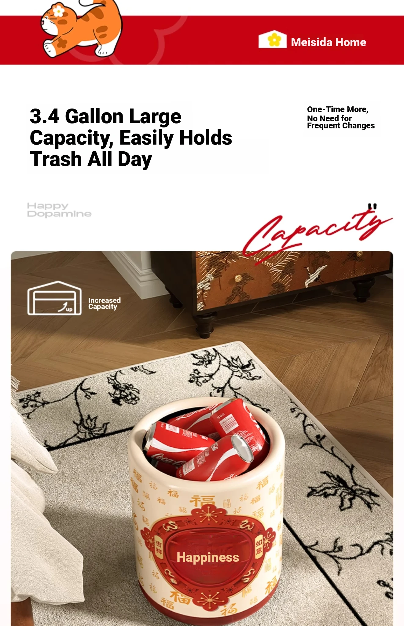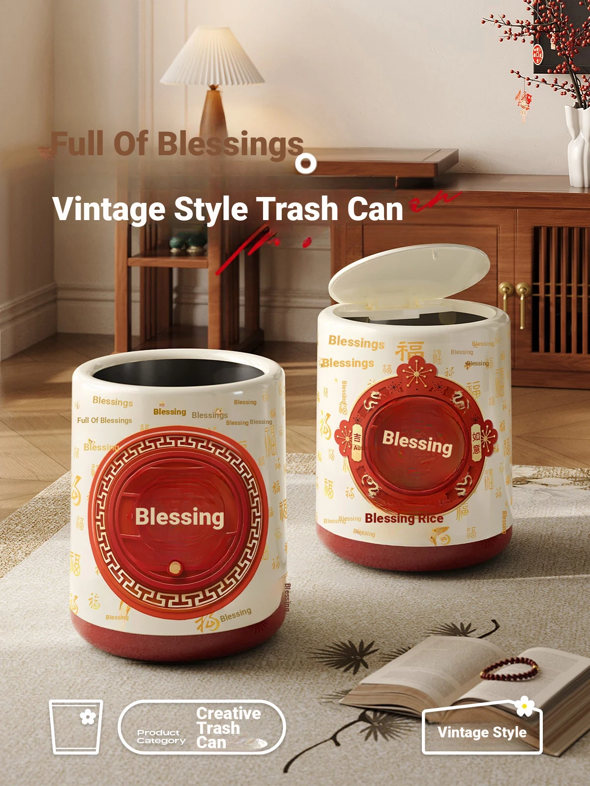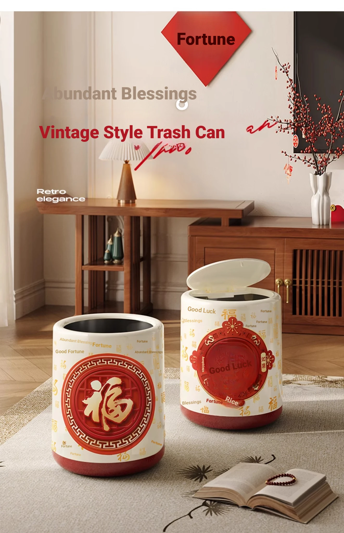 Meisida Large Capacity Trash Can - Festive Vintage Design for Home, Perfect for Living Room, Bedroom, and Bathroom - Bring Abundance and Joy to Your Space!