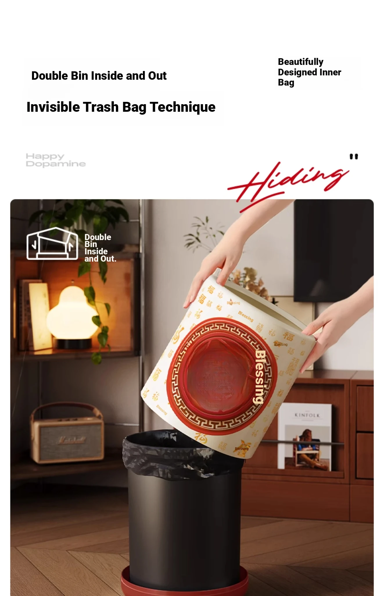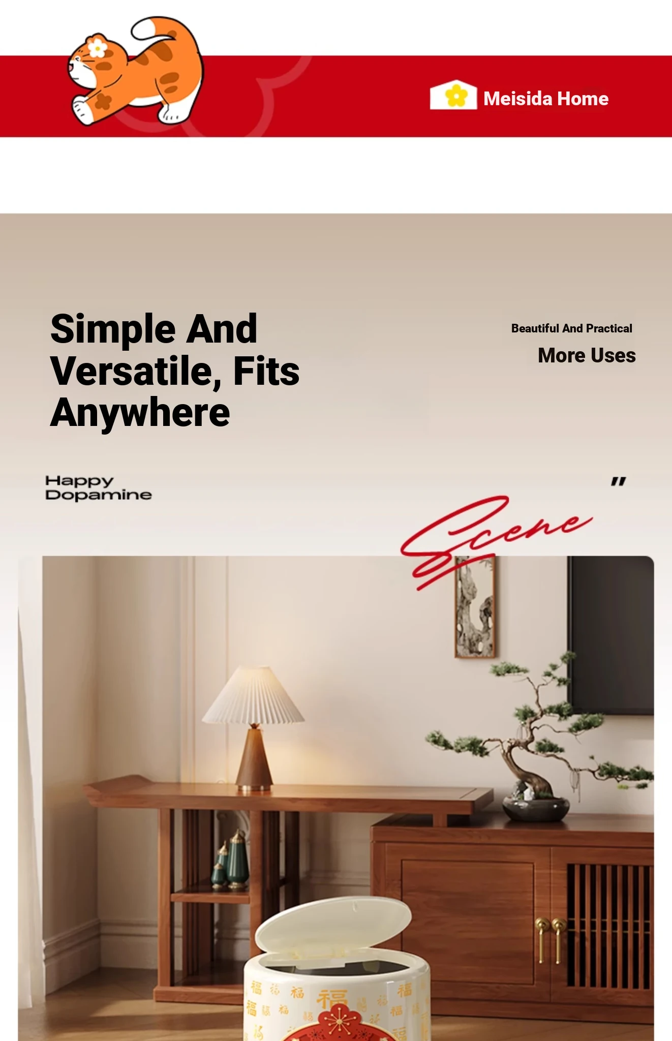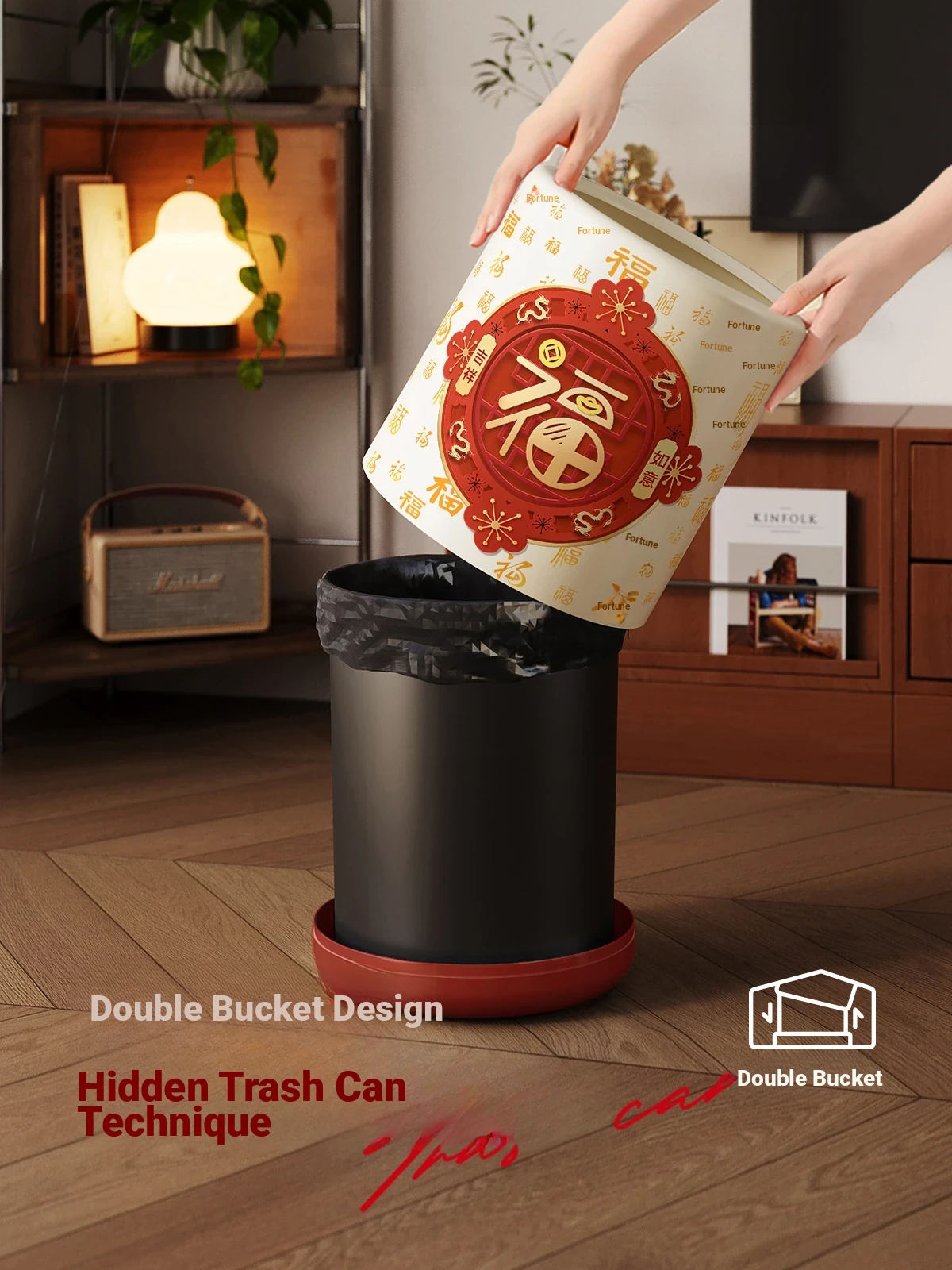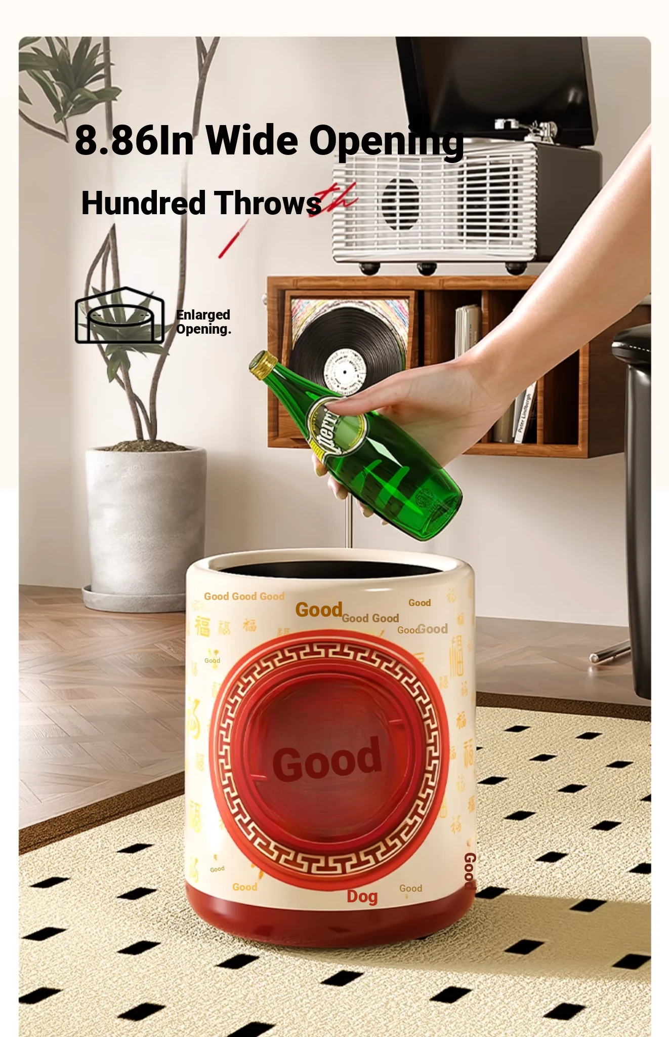 Meisida Large Capacity Trash Can - Festive Vintage Design for Home, Perfect for Living Room, Bedroom, and Bathroom - Bring Abundance and Joy to Your Space!