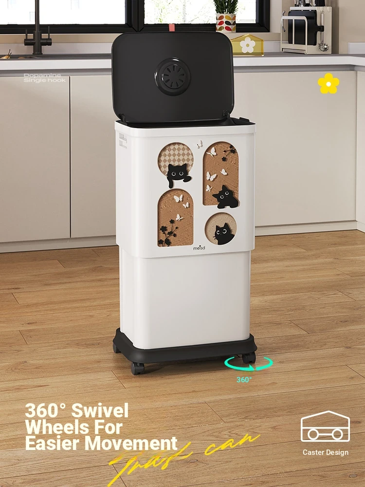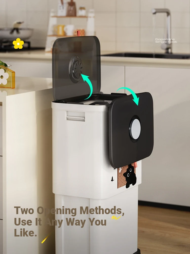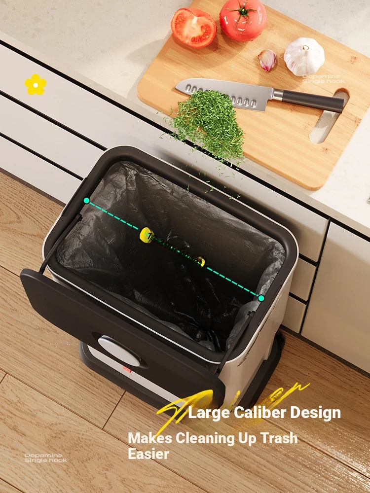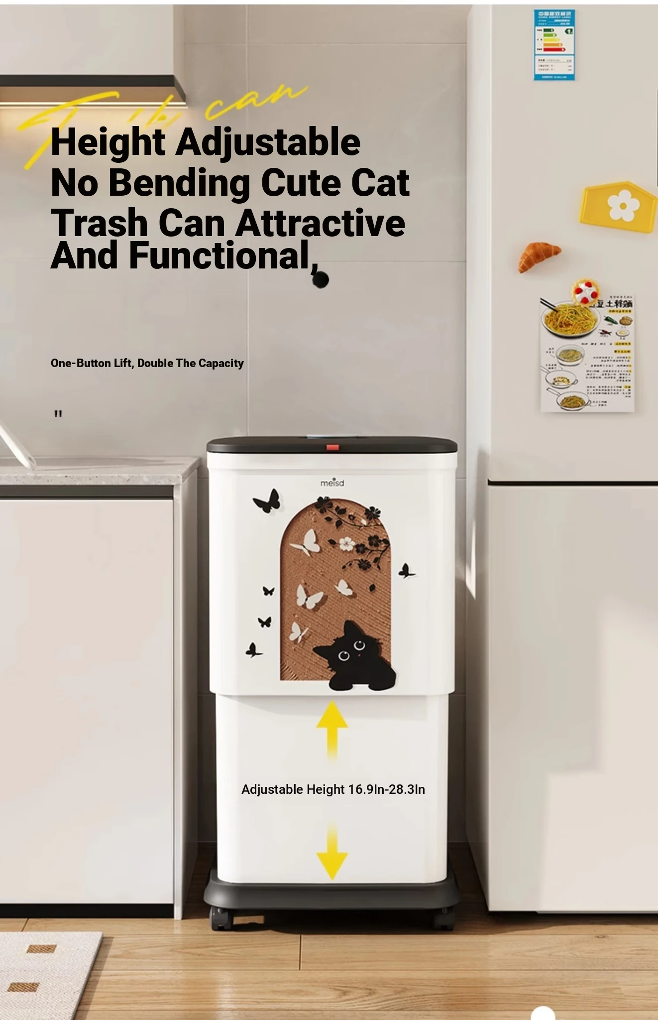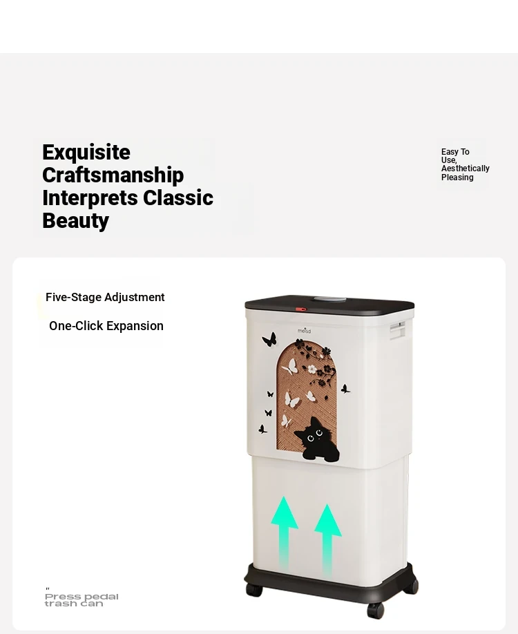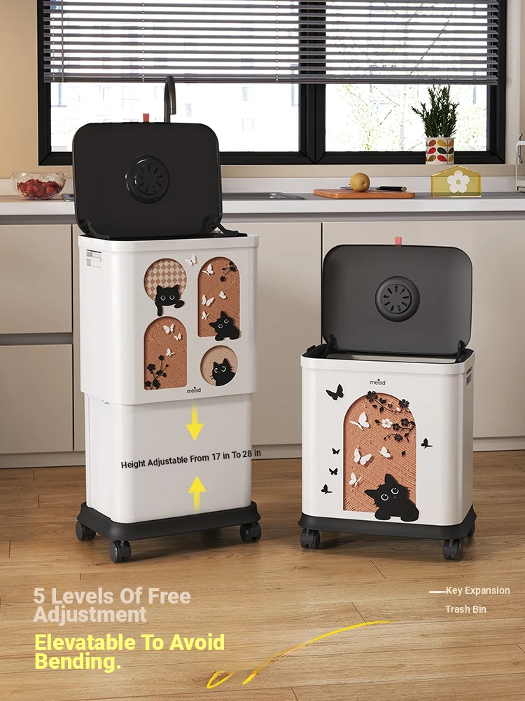 Stylish High-Capacity Kitchen Trash Can - Vintage Design, Adjustable Height, Portable and Perfect for Home Use