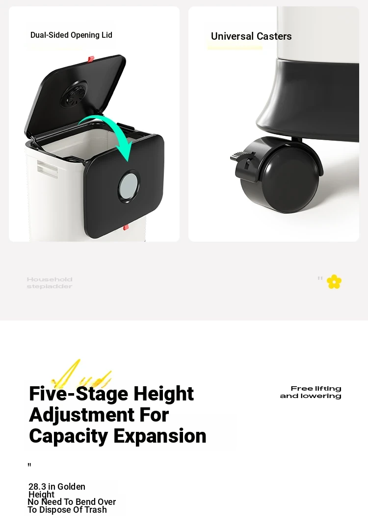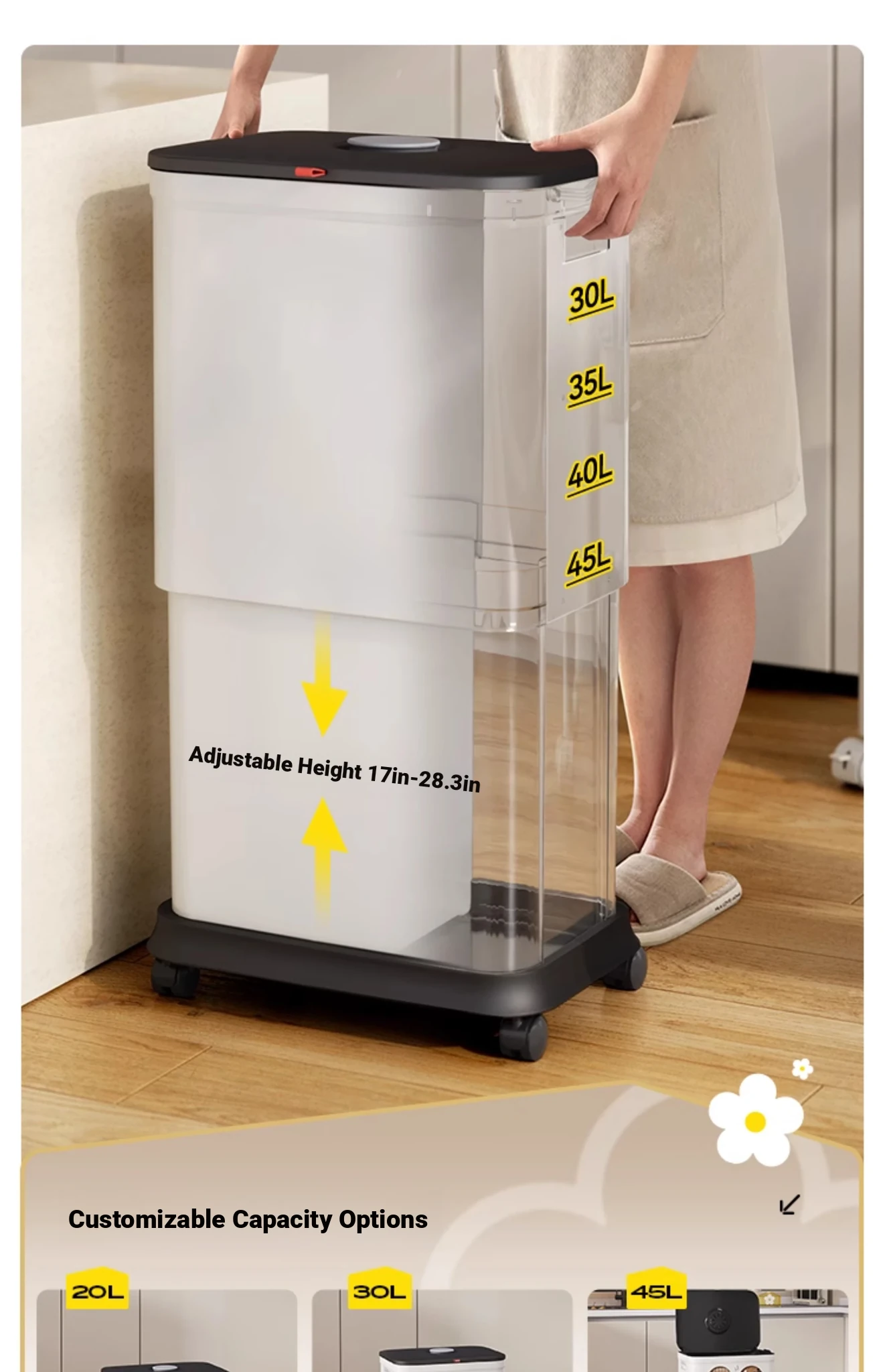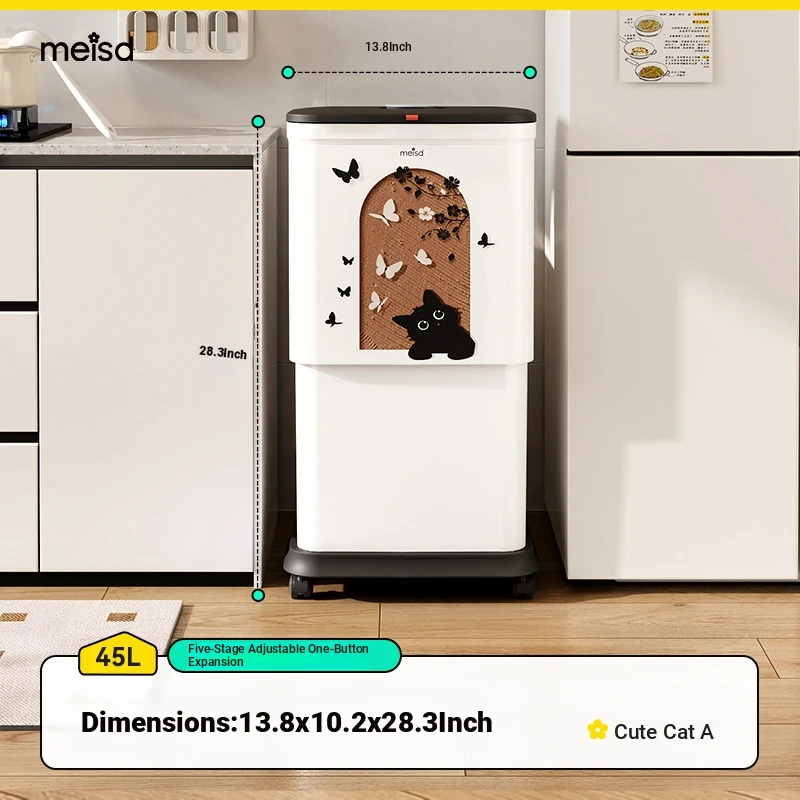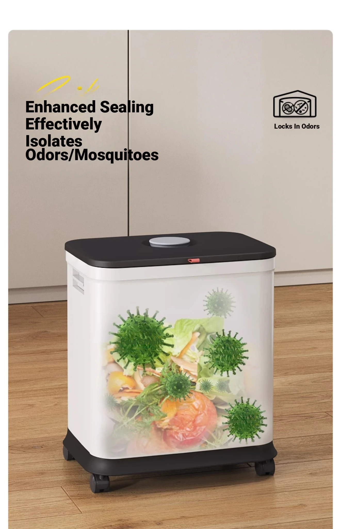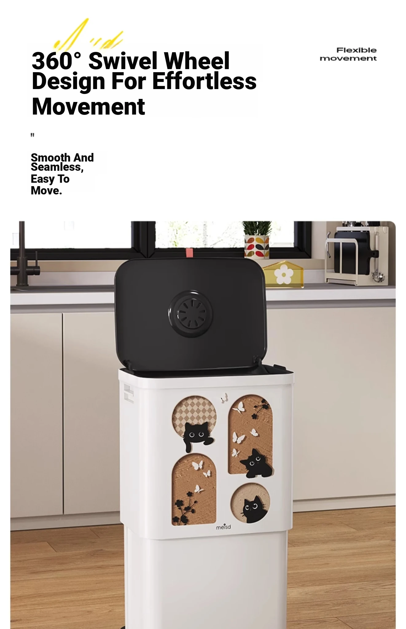 Stylish High-Capacity Kitchen Trash Can - Vintage Design, Adjustable Height, Portable and Perfect for Home Use
