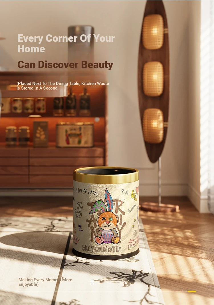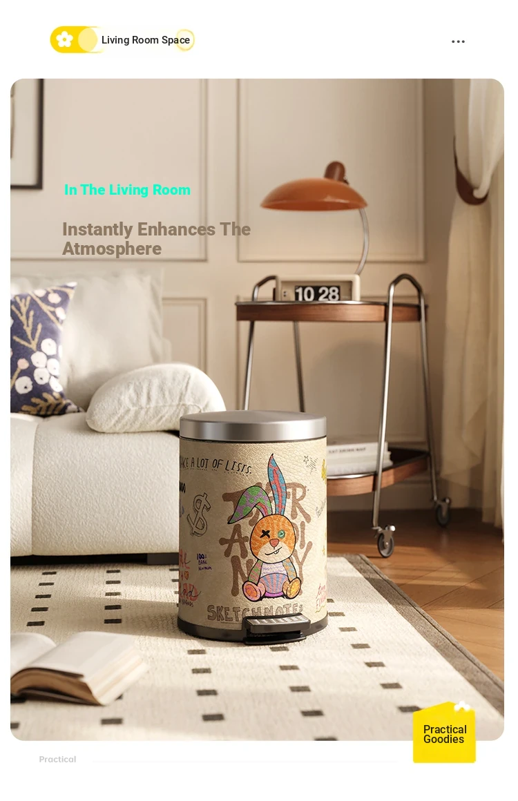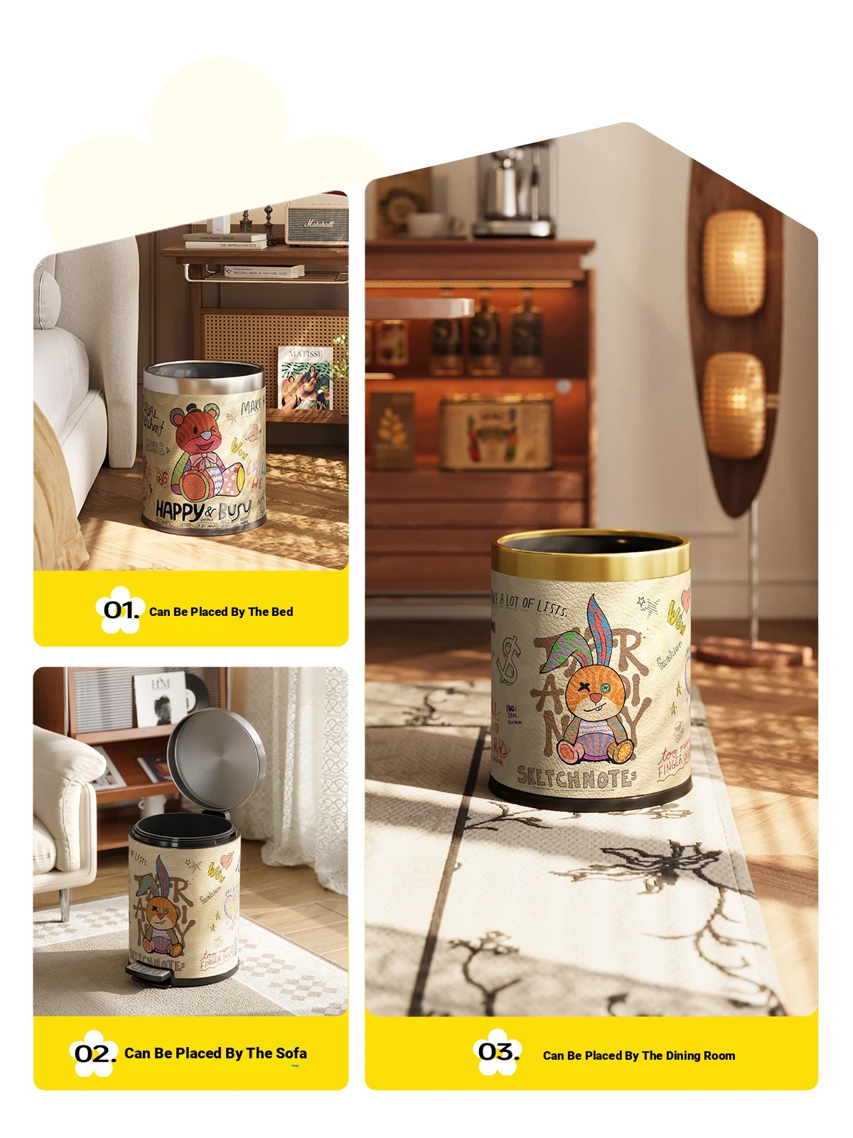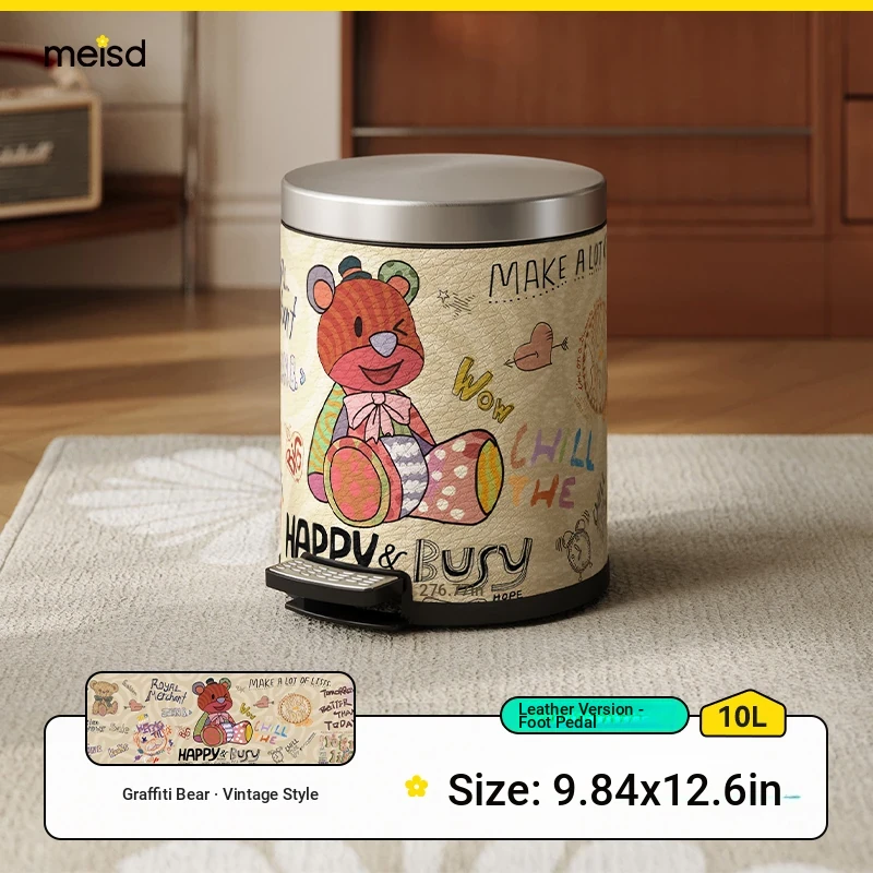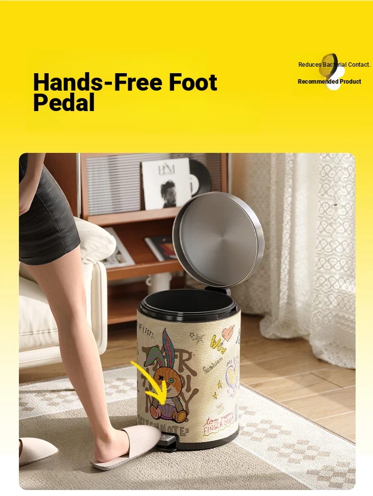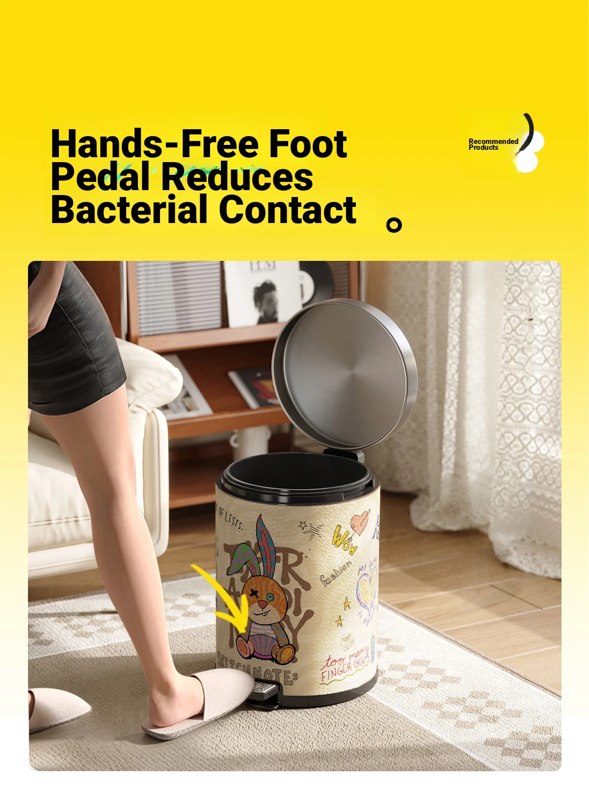 Stylish Stainless Steel Leather Trash Can - 2025 New American Vintage Design with Foot Pedal and Lid for Home Use, Perfect for Your Living Room