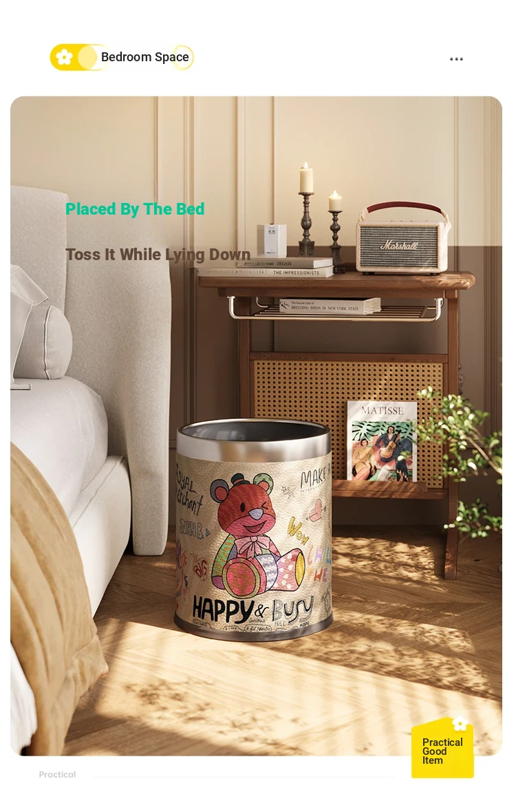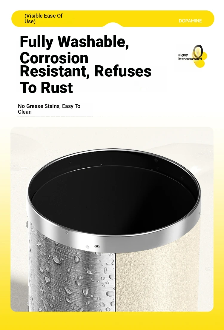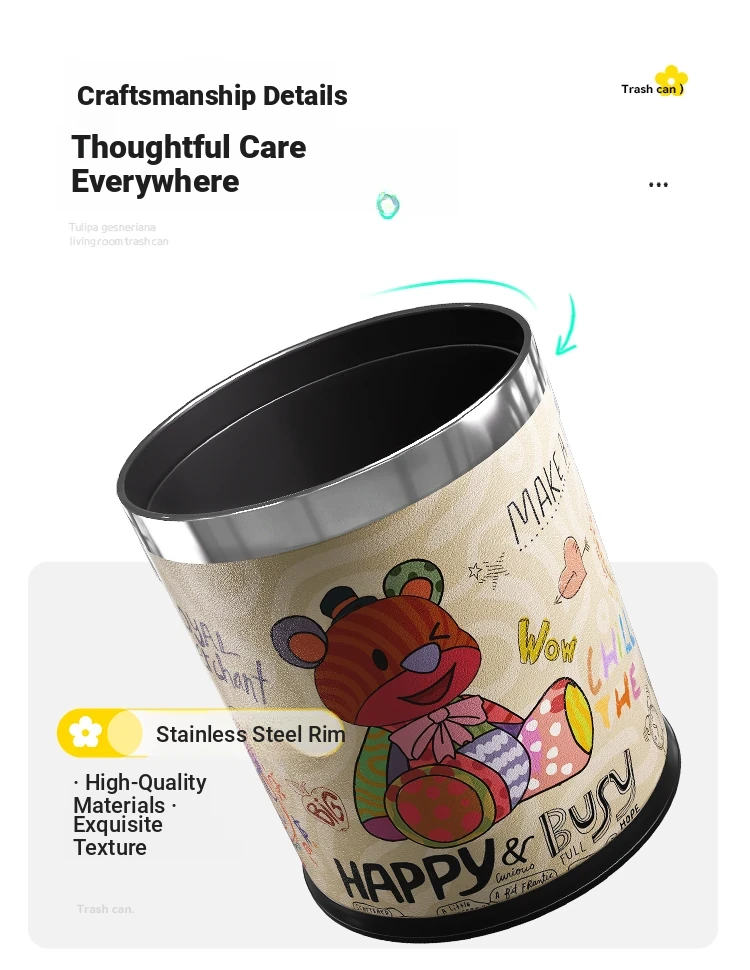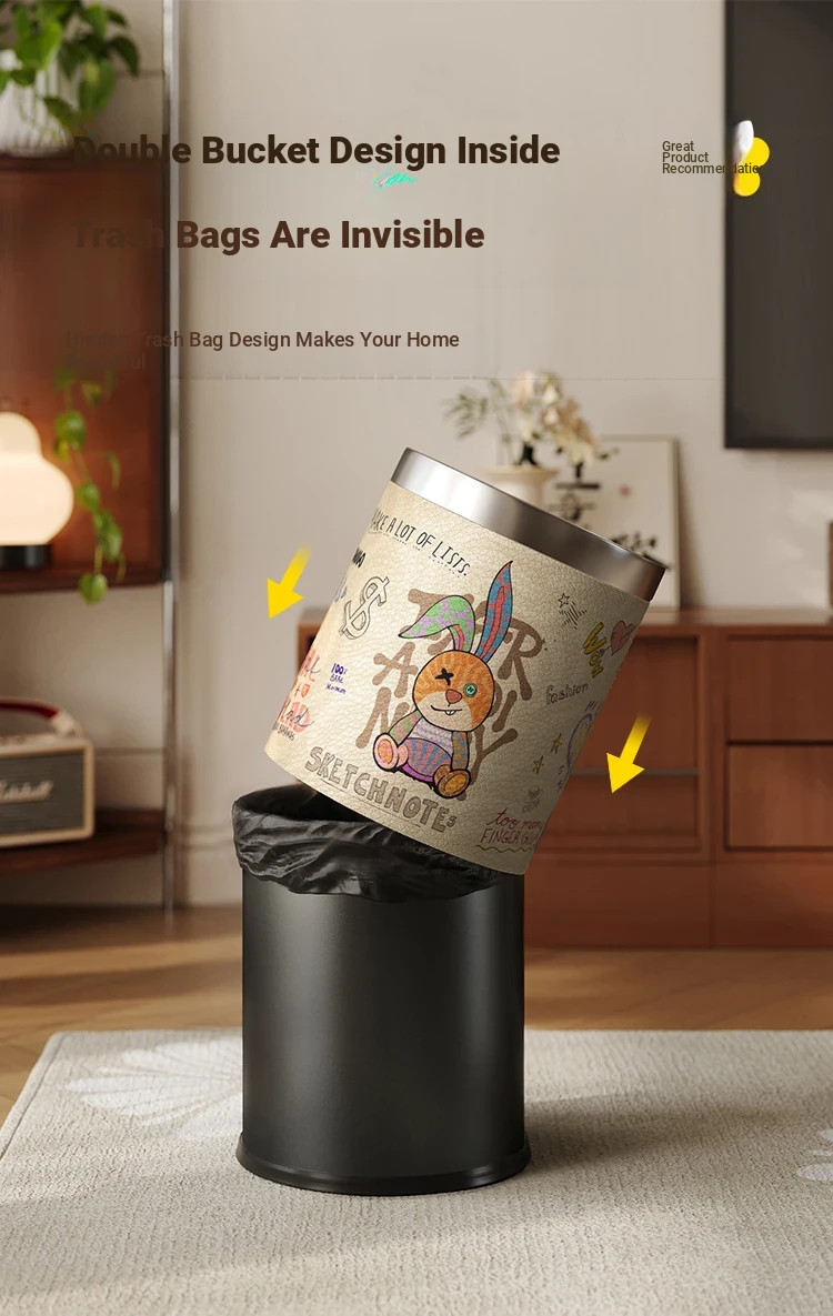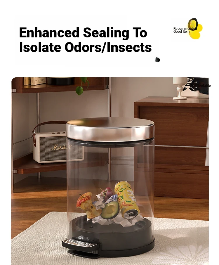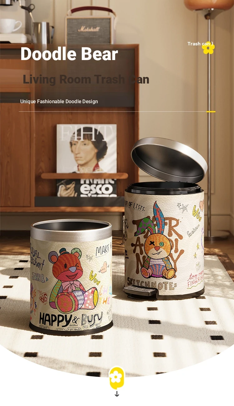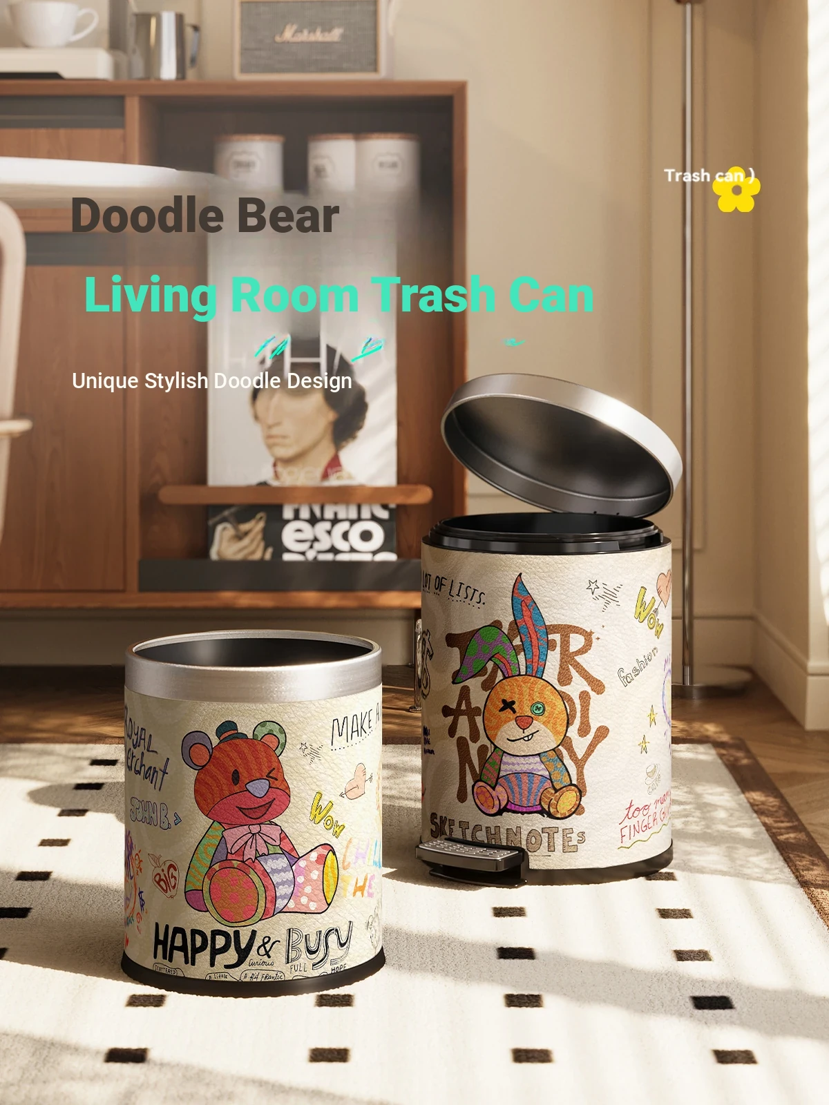 Stylish Stainless Steel Leather Trash Can - 2025 New American Vintage Design with Foot Pedal and Lid for Home Use, Perfect for Your Living Room
