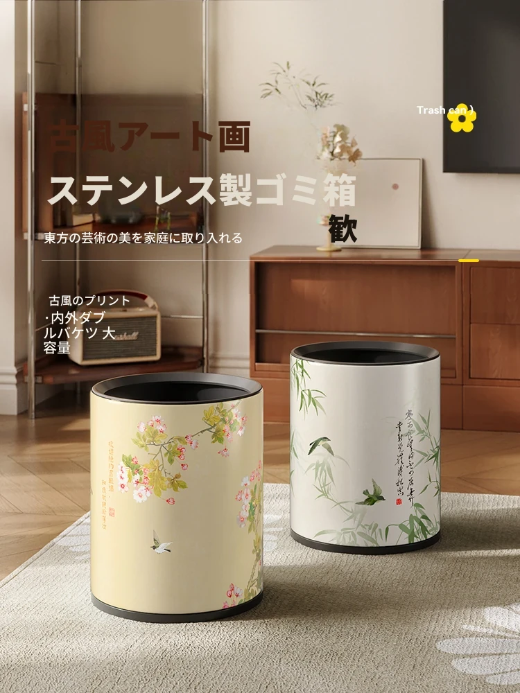 美世达のクリエイティブなゴミ箱 - 高いデザイン性!2025年新作、和風スタイルの大容量蓋付きペーパーバスケット。リビングや寝室にぴったり。おしゃれで実用的なアイテムで、あなたの生活空間をグレードアップ!