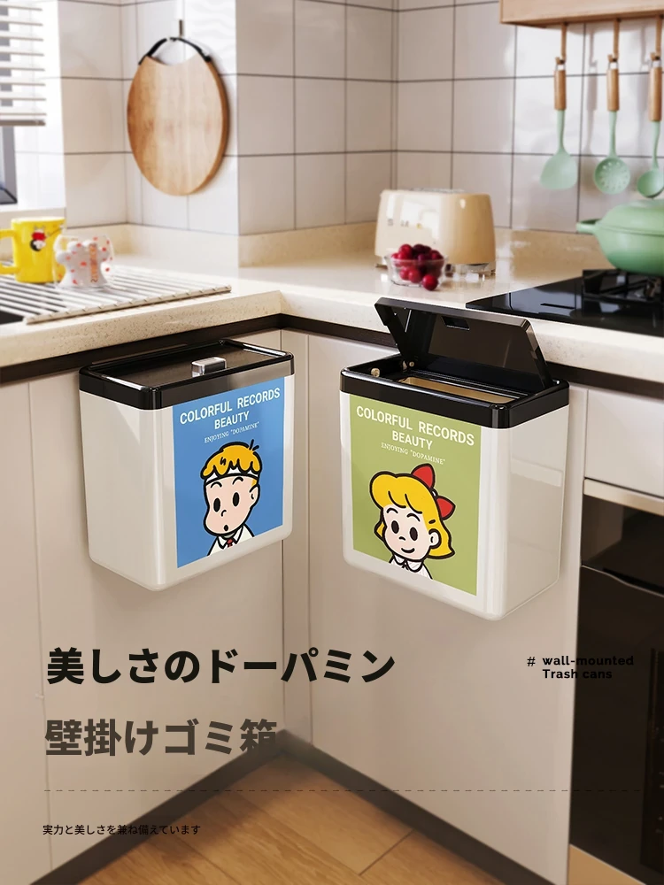 美世达創意原田治家用壁掛けゴミ箱 - キッチン収納やトイレ専用に最適な衛生的なペーパーバスケット!限られたスペースを有効活用し、スタイリッシュに整理整頓!