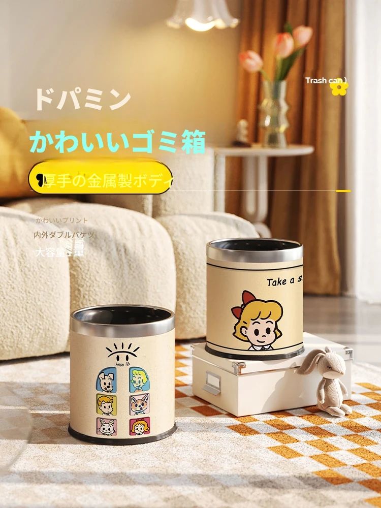 美世达のリビングルーム用ゴミ箱 新型 高デザイン 寝室用 かわいいカートゥーンスタイル ドーパミンバケツ 大容量 大型