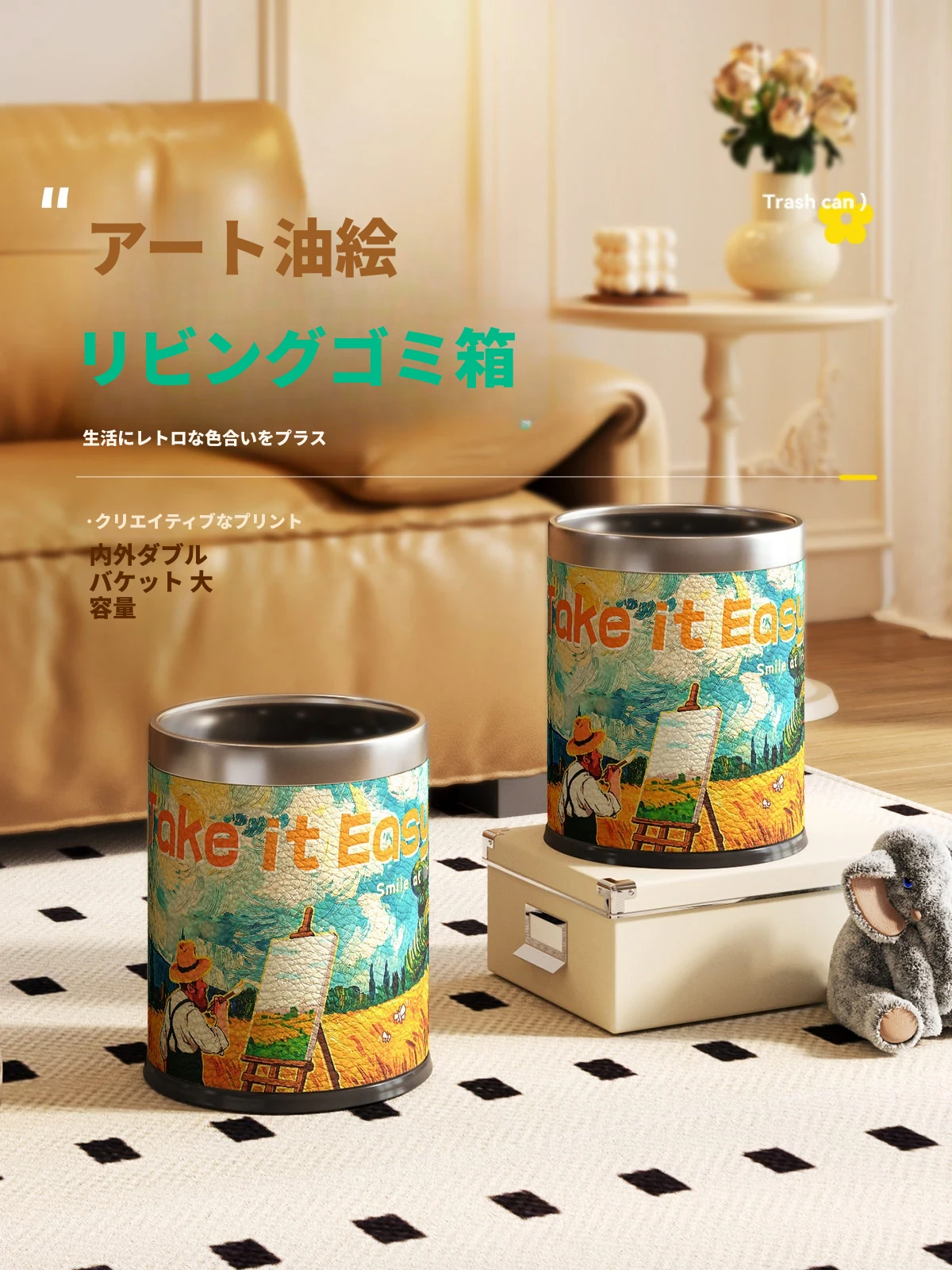美世达の家庭用クリエイティブ油絵スタイルのゴミ箱 - ラグジュアリーでアートなレトロデザイン、リビングや寝室にぴったりの高品質収納バスケット!
