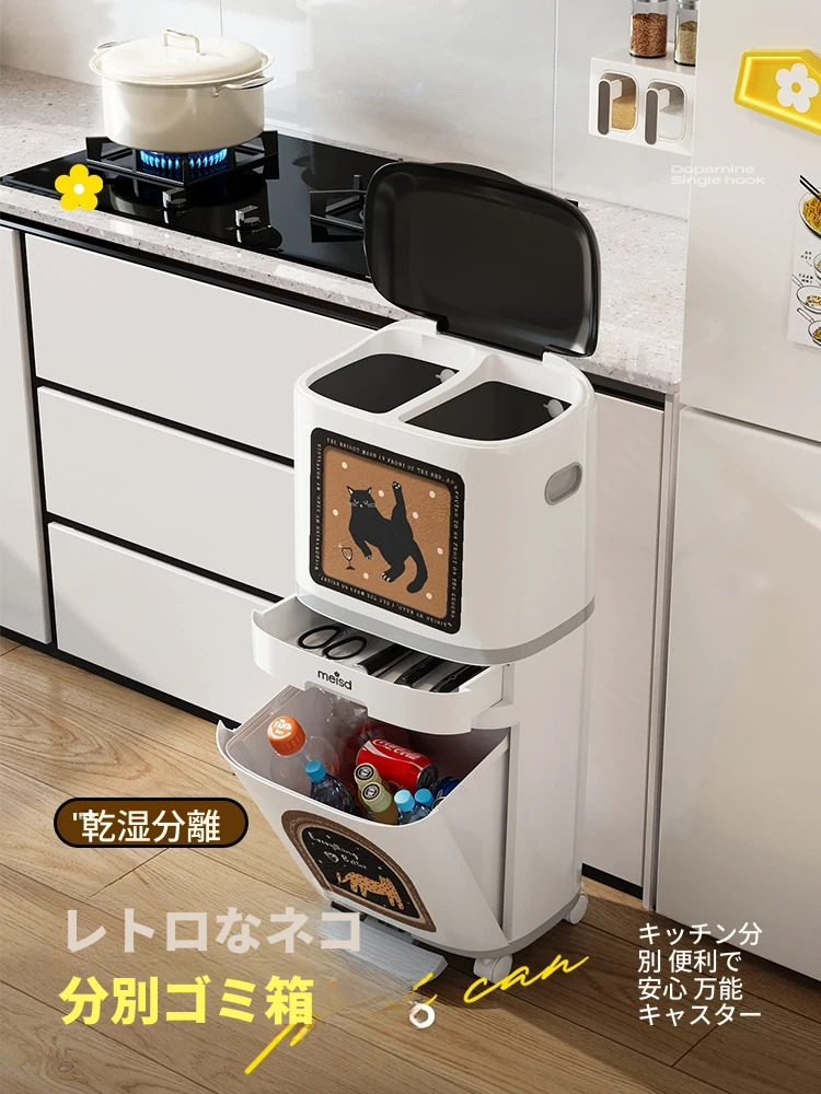 美世达 中古風 スタイリッシュゴミ箱 家庭用 湿乾分別 キッチン専用 腰を曲げずに使える!ダブルレイヤー 大容量で高デザイン!