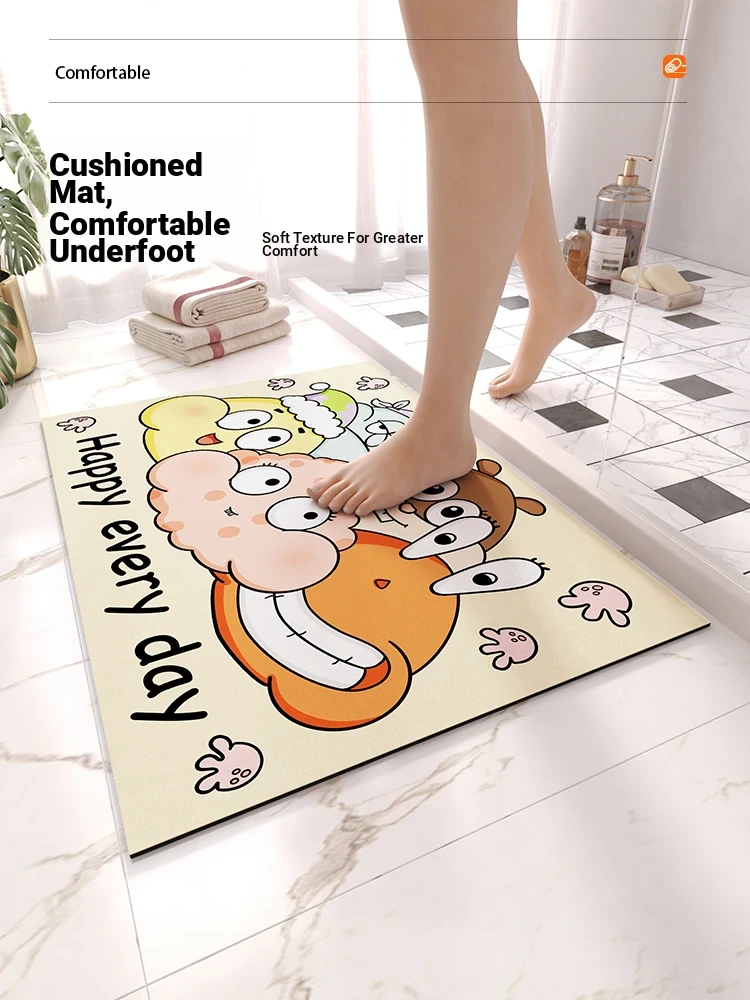 Cute SpongeBob Cartoon Bath Mat - Absorbent, Non-Slip Bathroom Rug for Toilet Entrance - Perfect for Showers and Hygienic Home Decor!