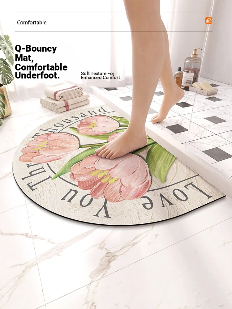 Meisida Quick-Dry Absorbent Bath Mat - Non-Slip Half-Round Bathroom Rug for Shower, Perfect for a Chic and Youthful Touch at Your Home Entrance