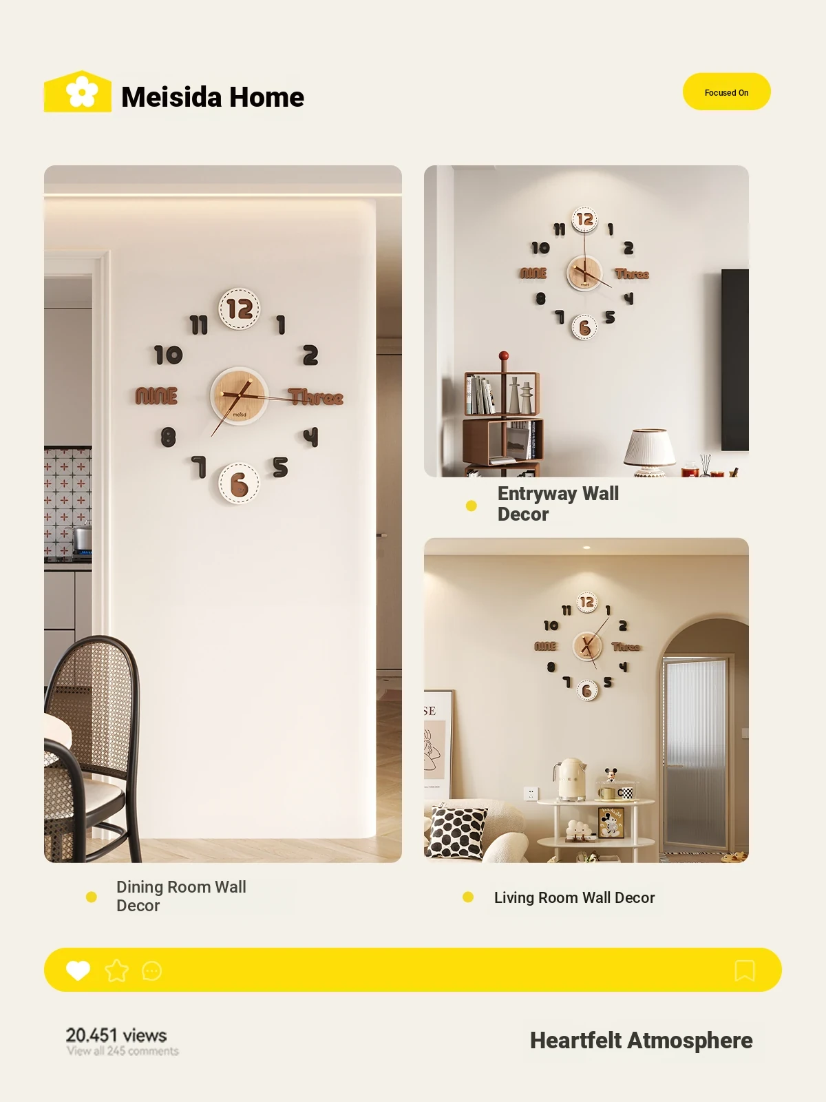 Meisida No-Drill Wall Clock for Living Room - 2025 New Creative DIY Minimalist Cream Style Wall Clock, Perfect for Home Décor